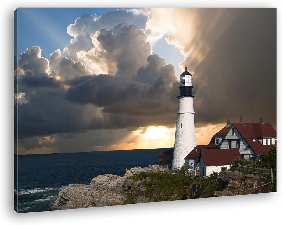 deyoli erhellender Leuchtturm an einer Felsigen Klippe Format: 80x60 als Leinwandbild, Motiv fertig