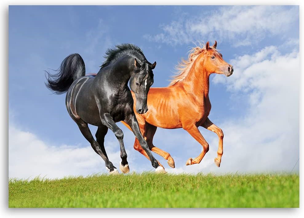 Feeby Vlies Leinwandbild Pferd Hengst Stute Laufen 90x60 cm Druckbild Wandbild Wanddekoration Deko W