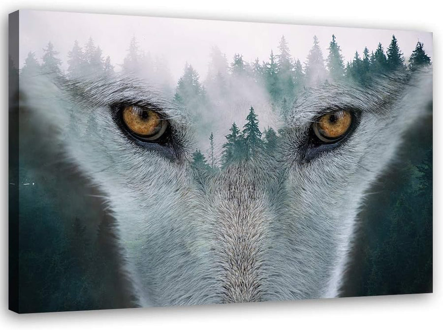 Feeby Vlies Leinwandbild Natur Wolf 120x80 cm Druckbild Wandbild Wanddekoration Deko Wand Aesthetic
