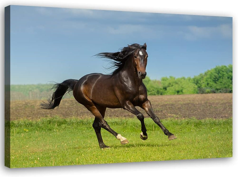 Feeby Vlies Leinwandbild Pferd Frei Laufen Wiese 90x60 cm Druckbild Wandbild Wanddekoration Deko Wan