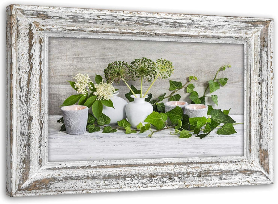 Feeby Vlies Leinwandbild Pflanzen Kerzenvasen 120x80 cm Wanddeko Design Kunstdruck Zimmerdeko Bilder