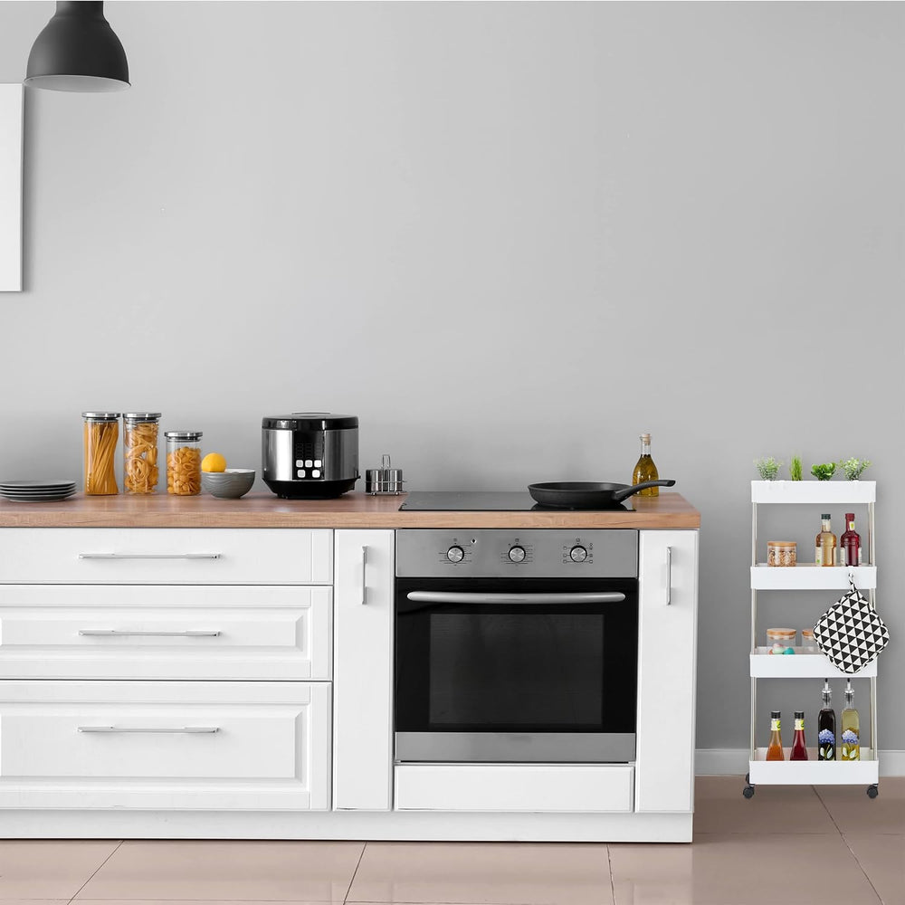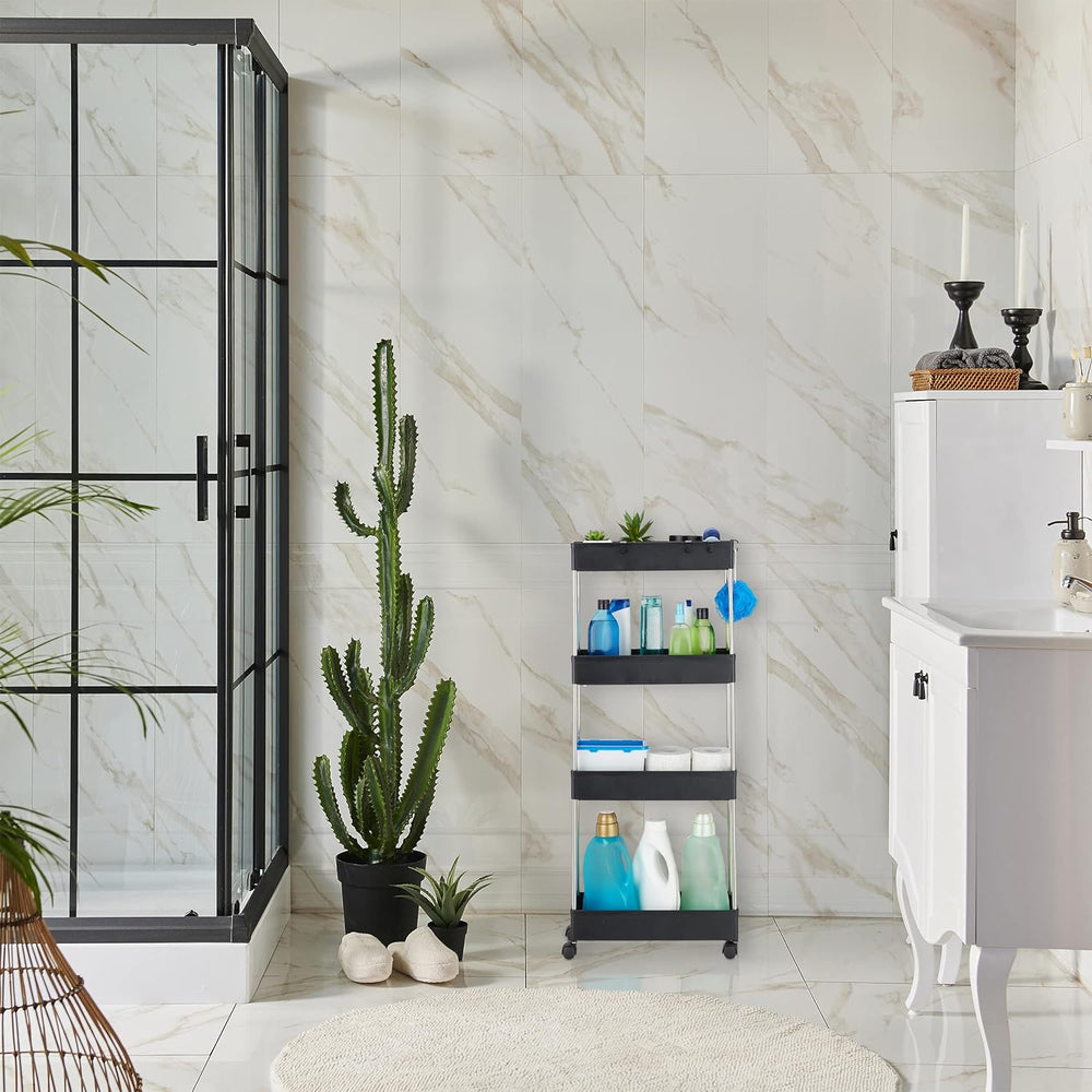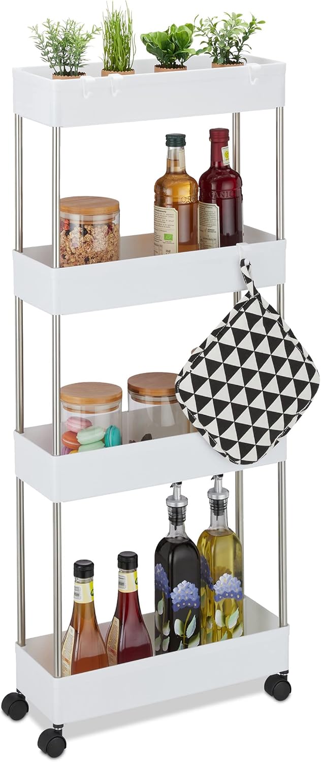 Relaxdays Nischenwagen, 4 Etagen, mit Rollen, Küche, Bad, Rollwagen, 88 x 41,5 x 14,5 cm, Kunststoff