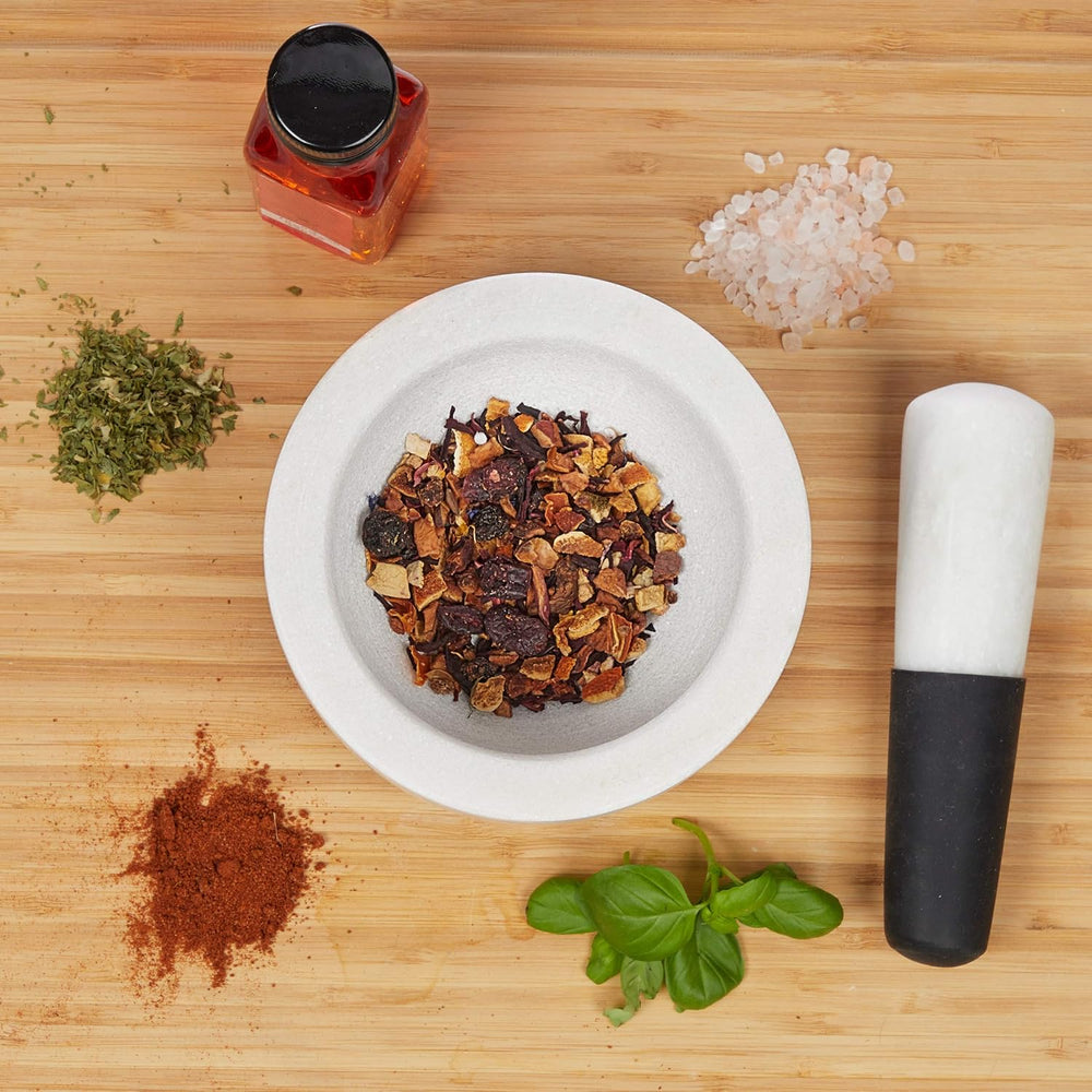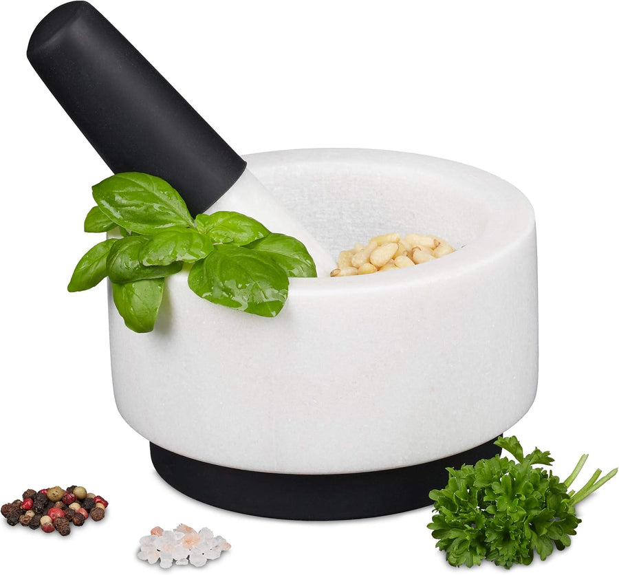 Relaxdays Mörser mit Stössel, Marmor, Silikon, langlebig, massiv, für Gewürze und Kräuter, Steinmörs
