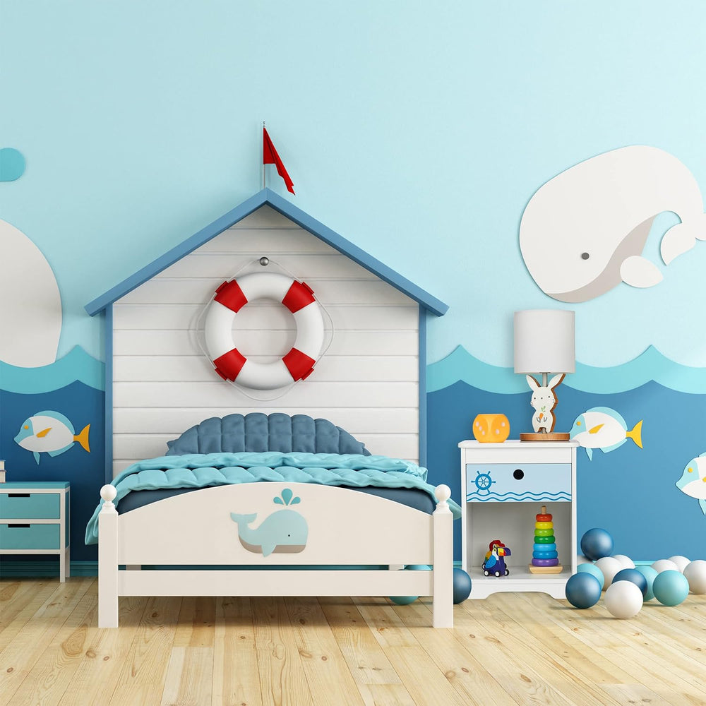 Relaxdays Nachttisch Kinder, Seemann-Design, Schublade & Staufach, Kinderzimmer Kommode, HBT: 41 x 3