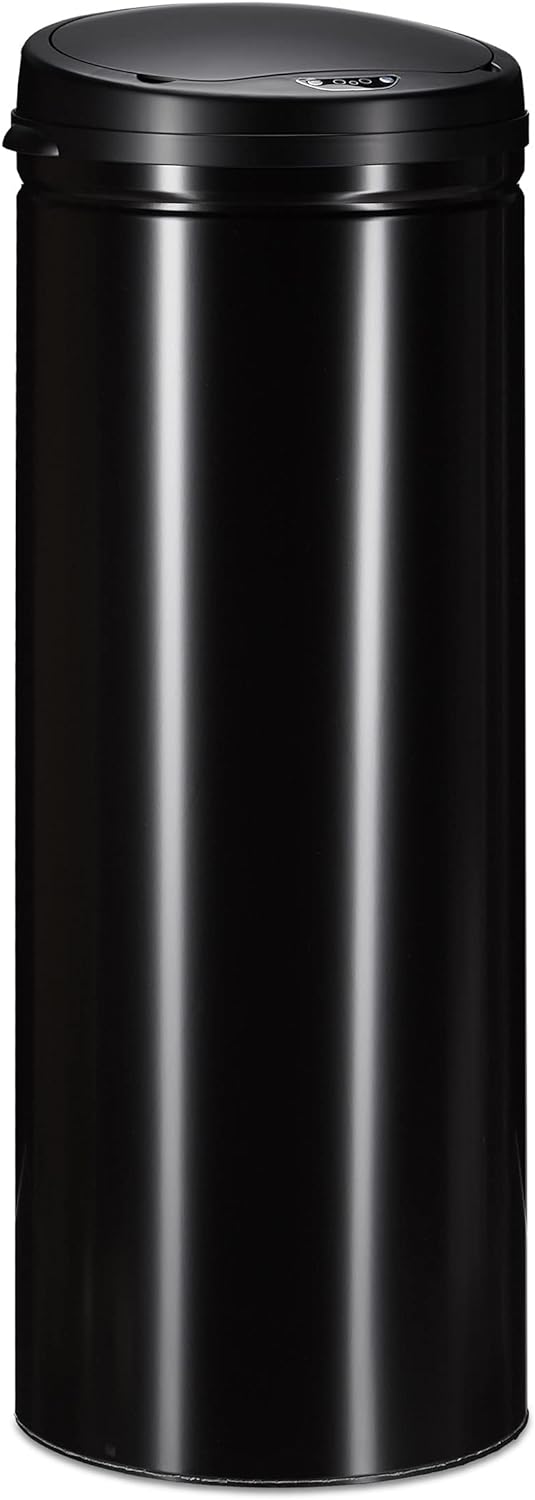 Relaxdays Mülleimer 50 L, mit Sensor, automatischer Deckel, aus Stahl, 80 cm hoch, 30 cm Durchmesser