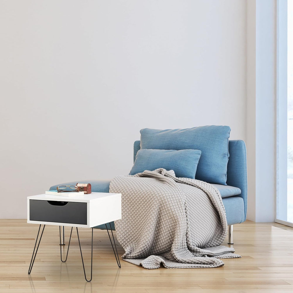 Relaxdays Nachttisch mit Schublade, modernes Design, eckiges Nachtschränkchen, HxBxT: 44 x 40 x 40 Z