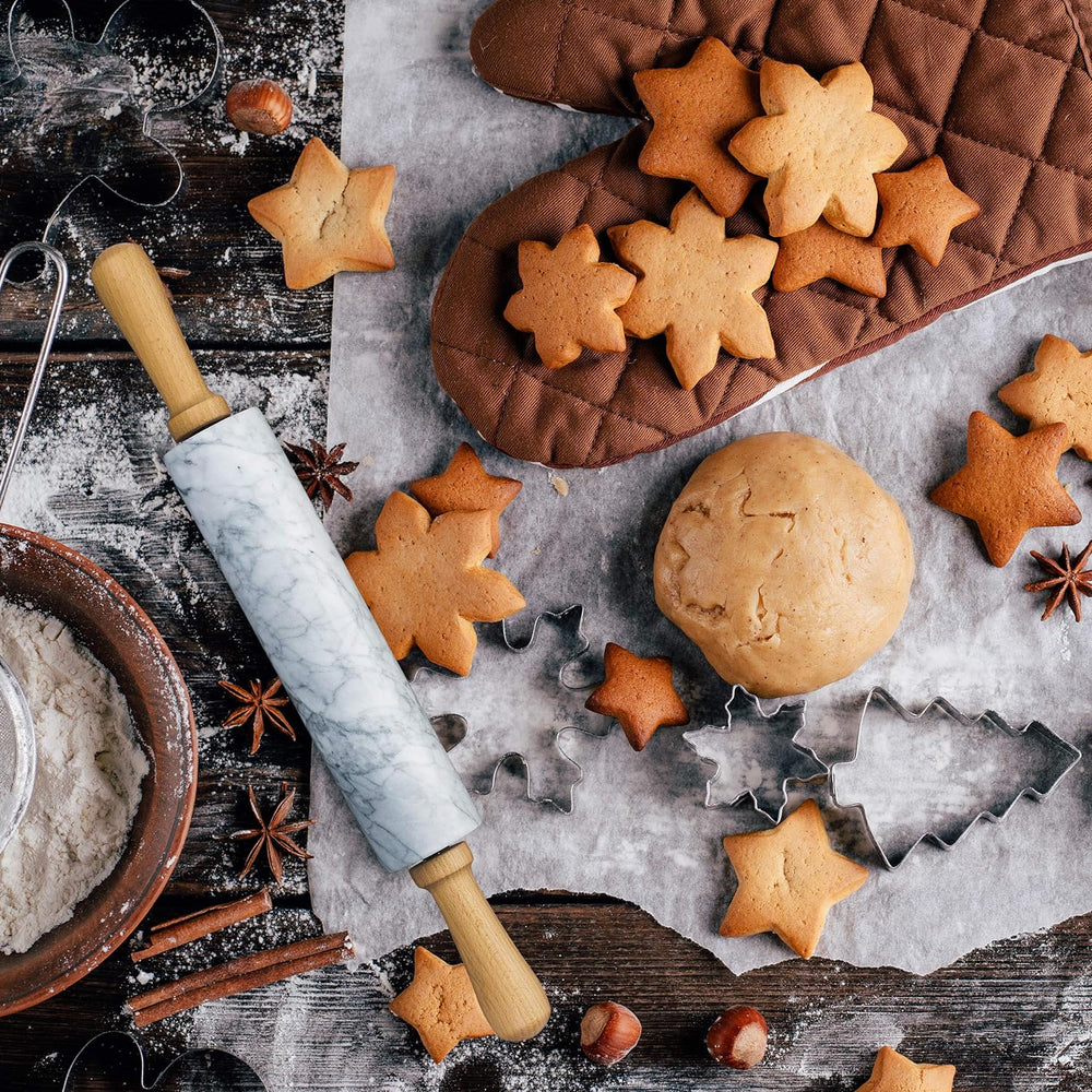 Relaxdays Nudelholz Marmor, Griffe aus Holz, Teigroller zum Kochen & Backen, mit Ablage, 48 cm, schw