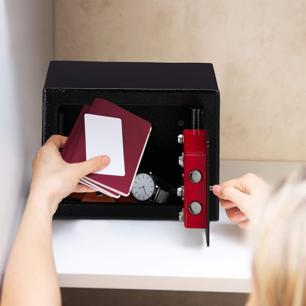Relaxdays Möbeltresor mit Schlüssel, Doppelbartschloss, Befestigung Wand o. Boden, Minisafe, HBT: 17