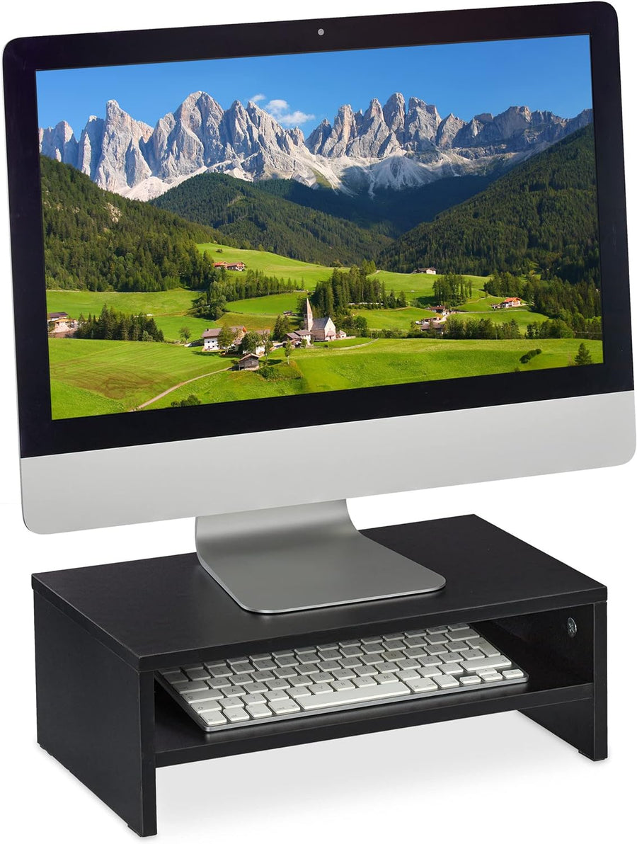 Relaxdays Monitorständer, Bildschirmerhöhung mit Fach, HBT: 14 x 40 x 23,5 cm, Schreibtisch, Büro &