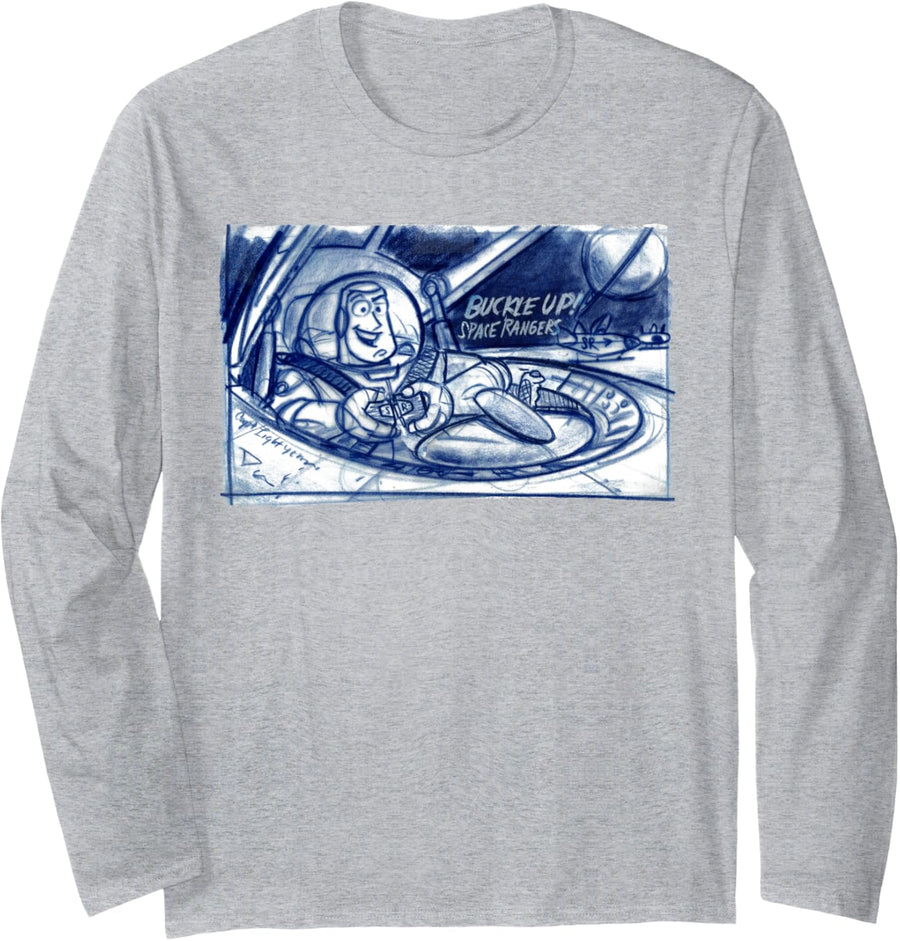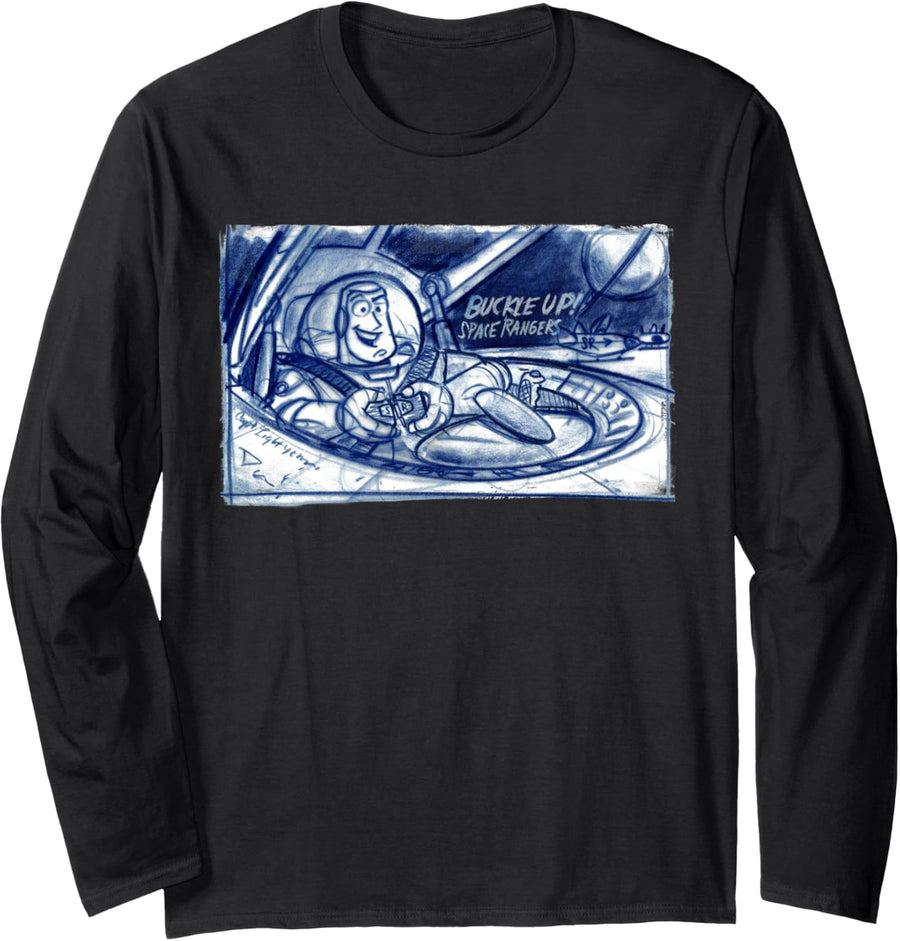 Disney Pixar Toy Story Buzz Lightyear Buckle Up Sketch Langarmshirt