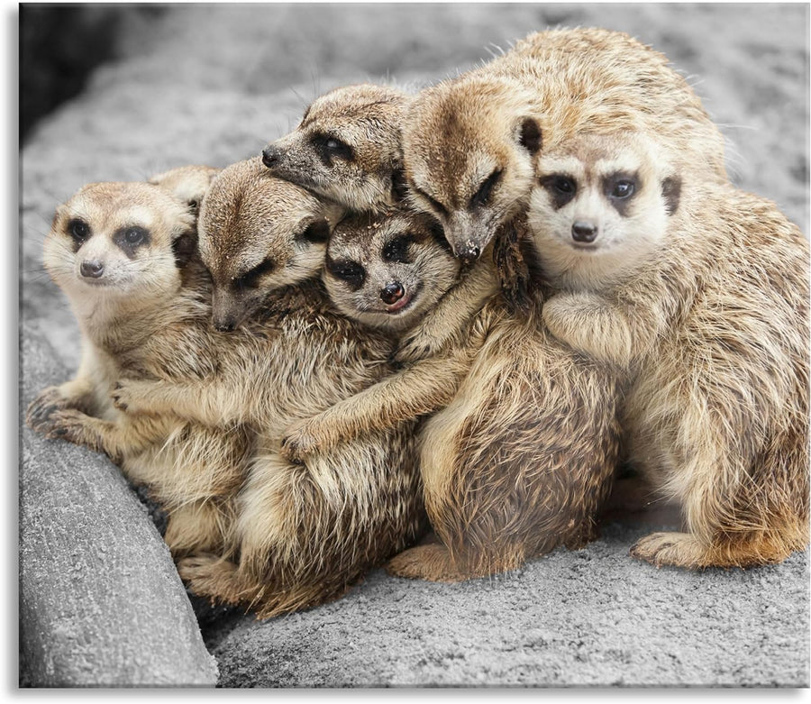 süsse Erdmännchen kuscheln Herdabdeckplatte & Spritzschutz aus Echtglas | Für Herd-Kochfelder | 60x5