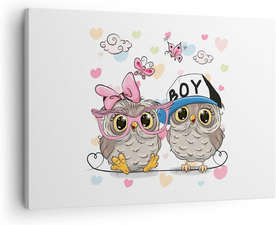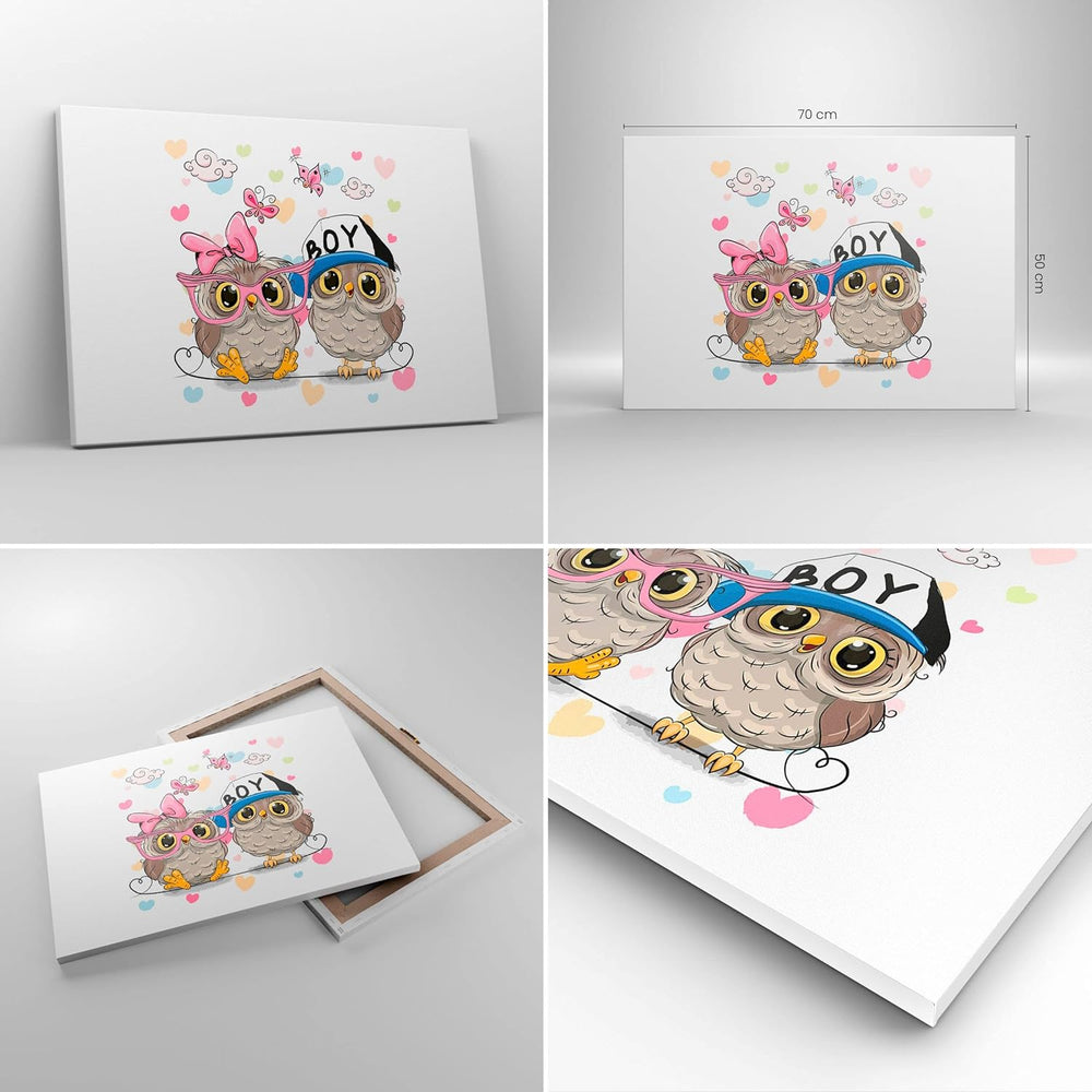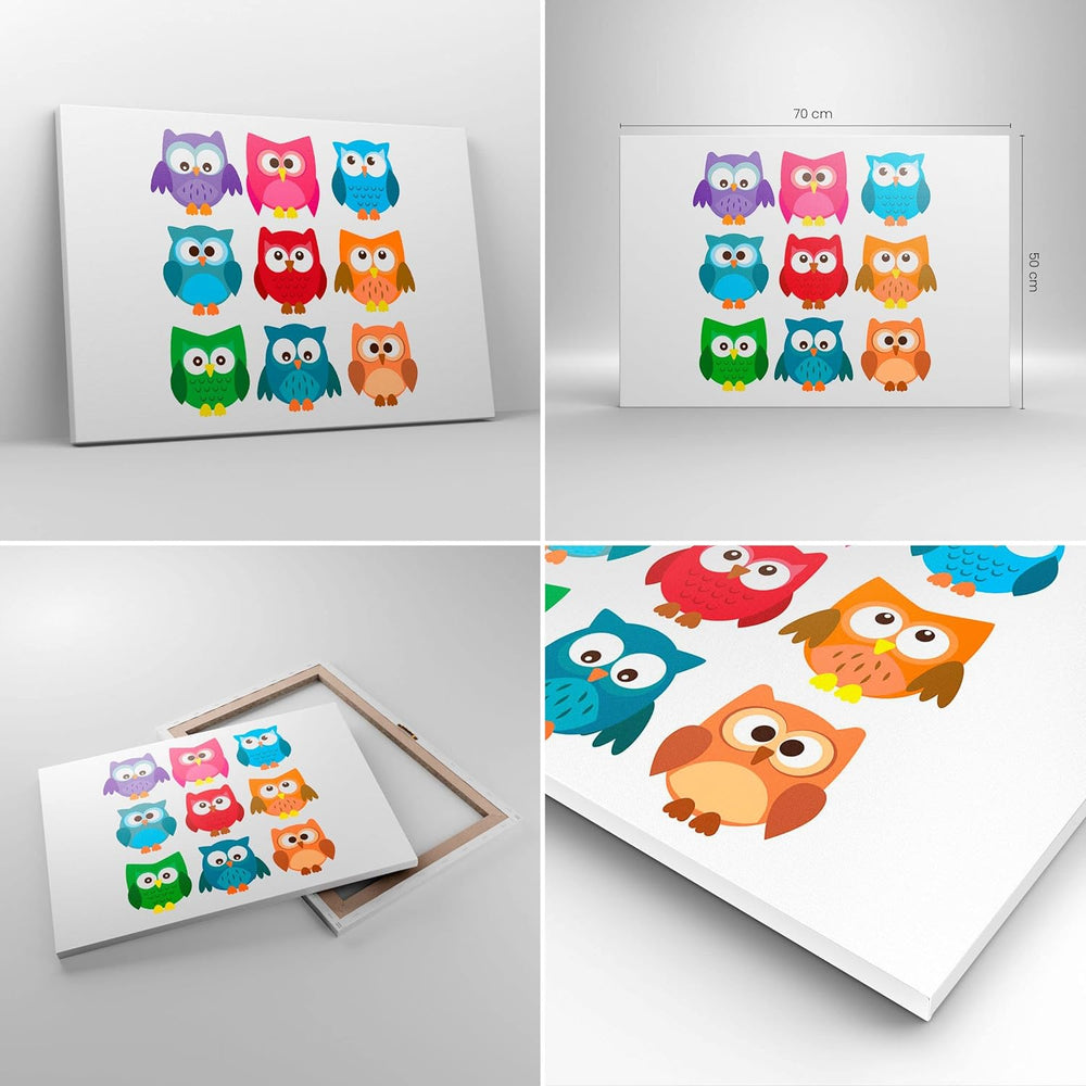 Bilder auf Leinwand Eulen Bunt Kinder Zeichnung Leinwandbild 70x50cm Wandbilder Dekoration Wohnzimme