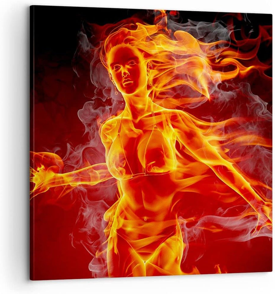 Bilder auf Leinwand Frau Flammen Illustration Leinwandbild 60x60cm Wandbilder Dekoration Wohnzimmer
