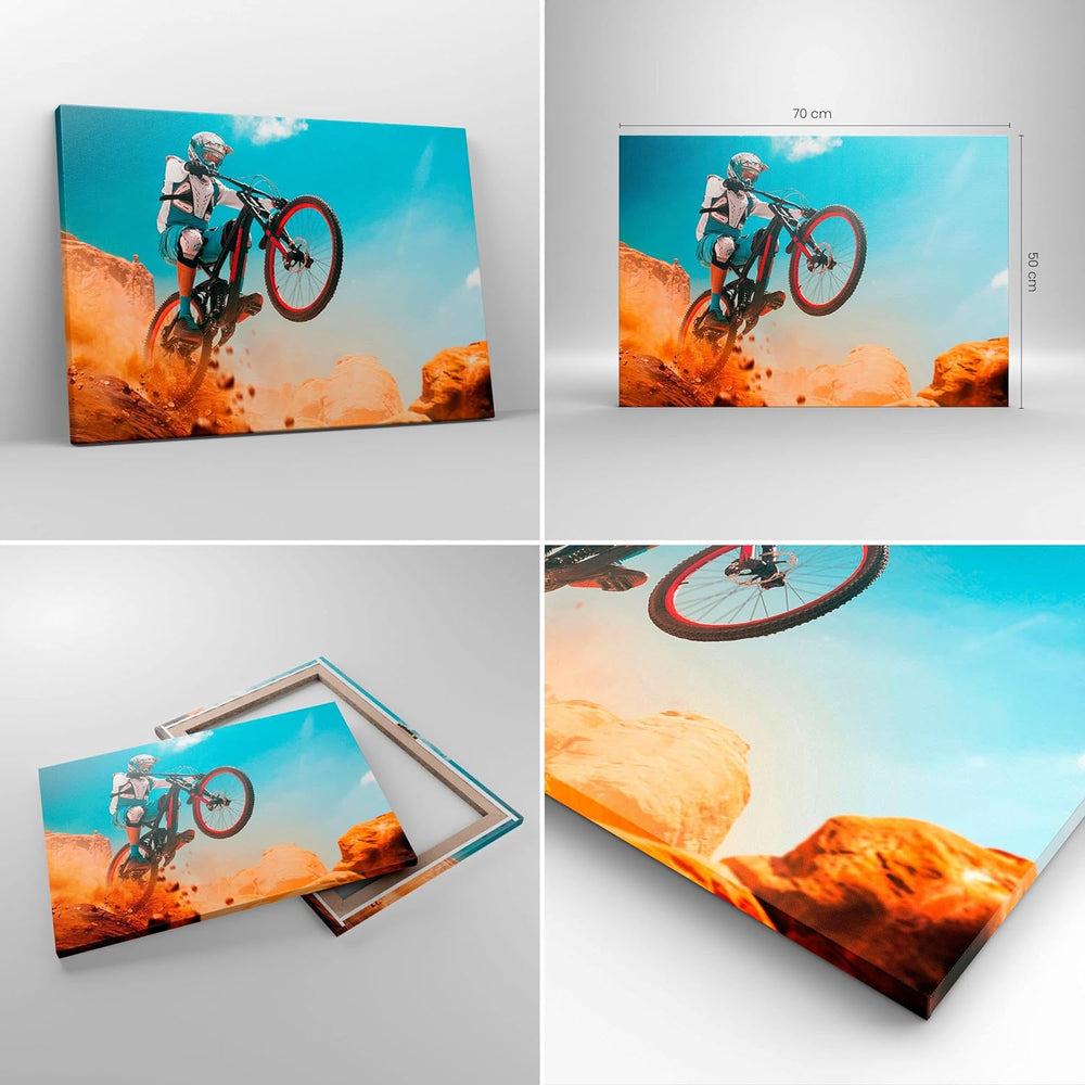 Bilder auf Leinwand Fahrrad Sport Helm Leinwandbild mit Rahmen 70x50cm Wandbilder Dekoration Wohnzim