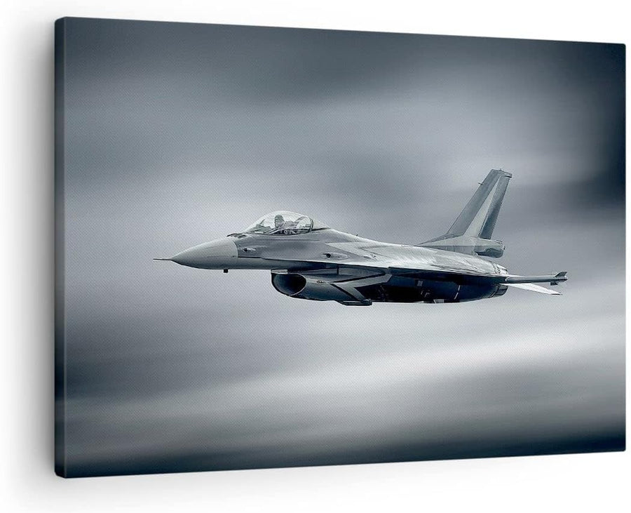 Bilder auf Leinwand Flugzeug Himmel Flug Leinwandbild mit Rahmen 70x50cm Wandbilder Dekoration Wohnz