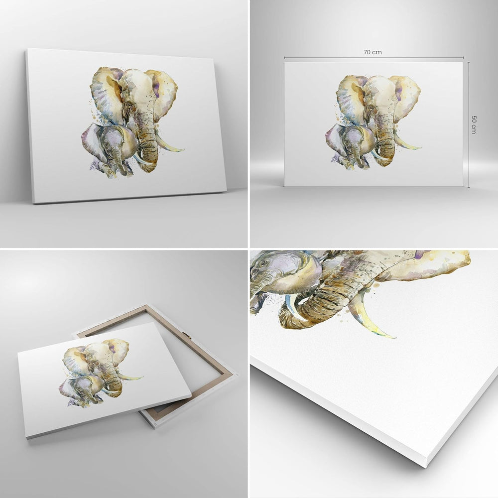 Bilder auf Leinwand Elefanten Illustration Bunt Leinwandbild 70x50cm Wandbilder Dekoration Wohnzimme