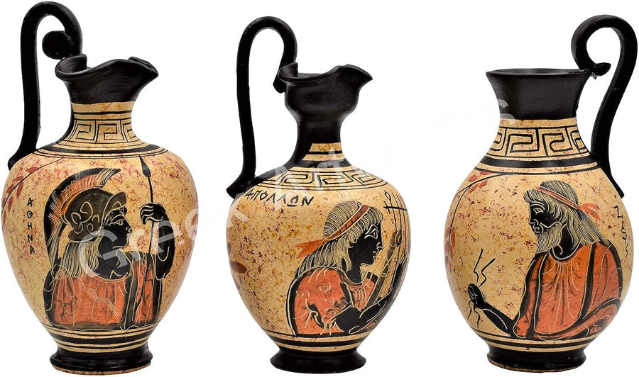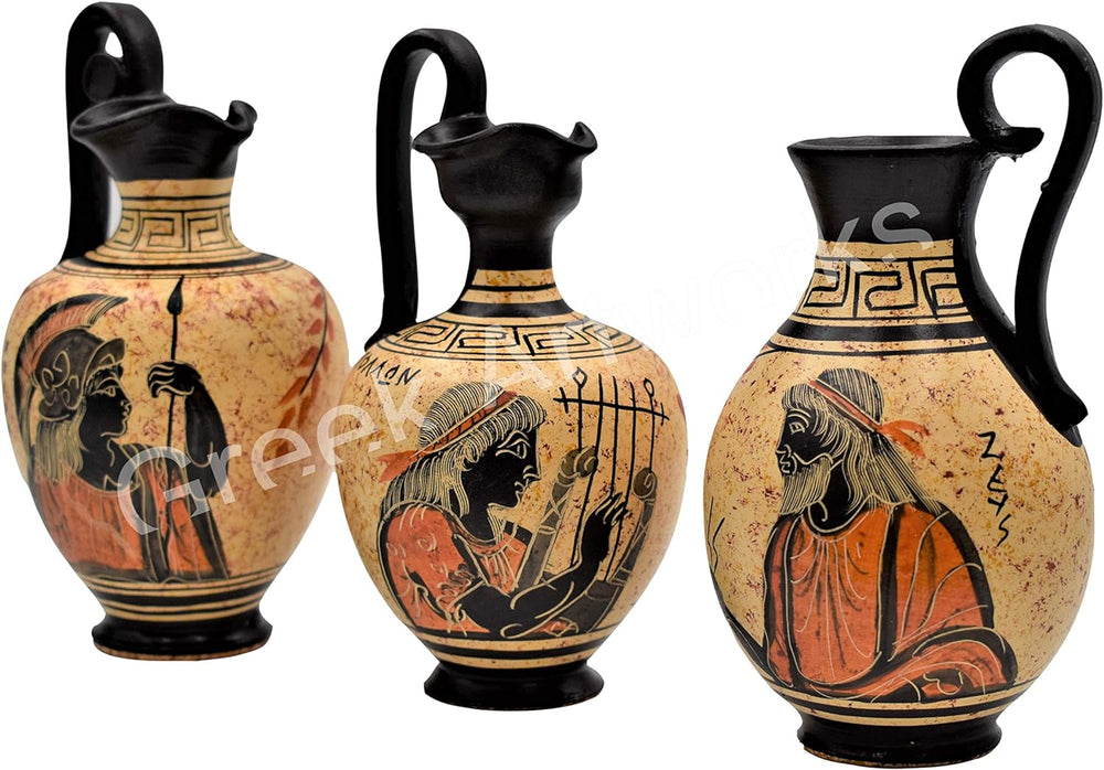 Set 3 Keramikvasen mit schwarzer Figur aus griechischer Keramik Zeus Apollo Athena