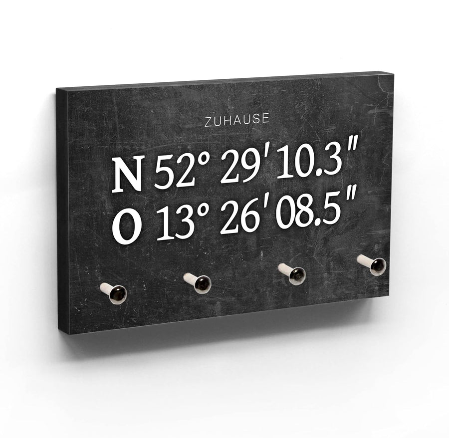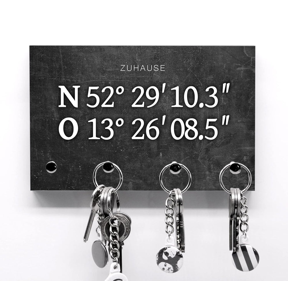 Schwarzes Schlüsselbrett Koordinaten - Deine Adresse von Zuhause als Koordinaten auf ein cooles Schl