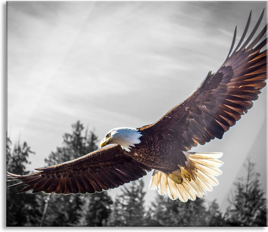 grosser fliegender Adler Herdabdeckplatte & Spritzschutz aus Echtglas | Für Herd-Kochfelder | 60x52