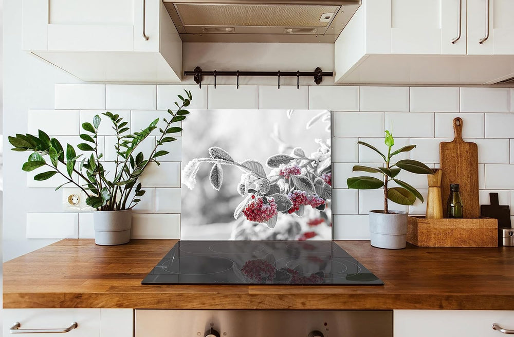 Vogelbeeren im frostigen Winter Herdabdeckplatte & Spritzschutz aus Echtglas | Für Herd-Kochfelder |