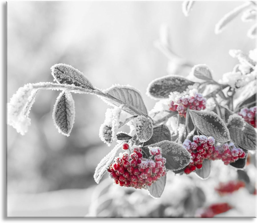 Vogelbeeren im Eiswürfel Format: 100x70 auf Leinwand, XXL riesige Bilder fertig gerahmt mit Keilrahm