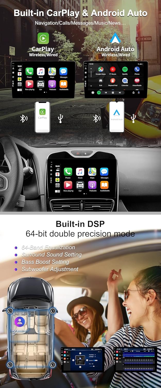 SXAUTO Android 12 IPS Autoradio Passt für Renault CLIO (2013-2019) - Eingebaut Wireless Carplay/Andr