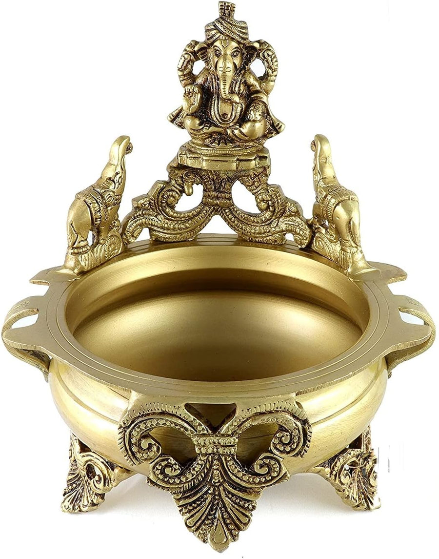 Taajoo Ganesha Design 19,1 cm Urli aus Messing, antikes Gelb, Standard