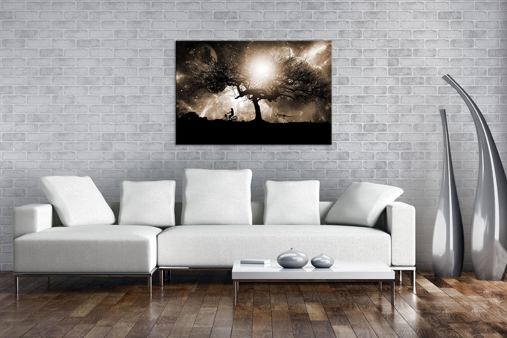deyoli Fantasie Landschaft einsamer Baum Format: 80x60 Effekt: Sepia als Leinwandbild, Motiv fertig