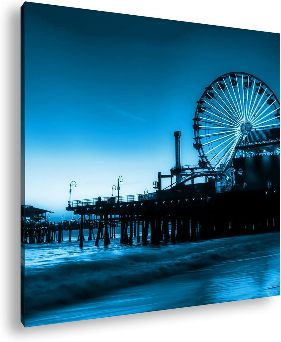 deyoli farbenfroher Jahrmarkt am Pier Format: 60x60 Effekt: Monocrome Blau als Leinwand, Motiv ferti