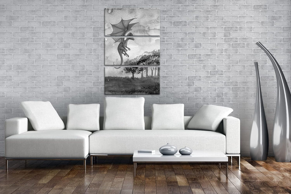 deyoli Fantasiegemälde eines lila Drachen Format: 3Teilig als Leinwand, Effekt: Schwarz&Weiss, Motiv