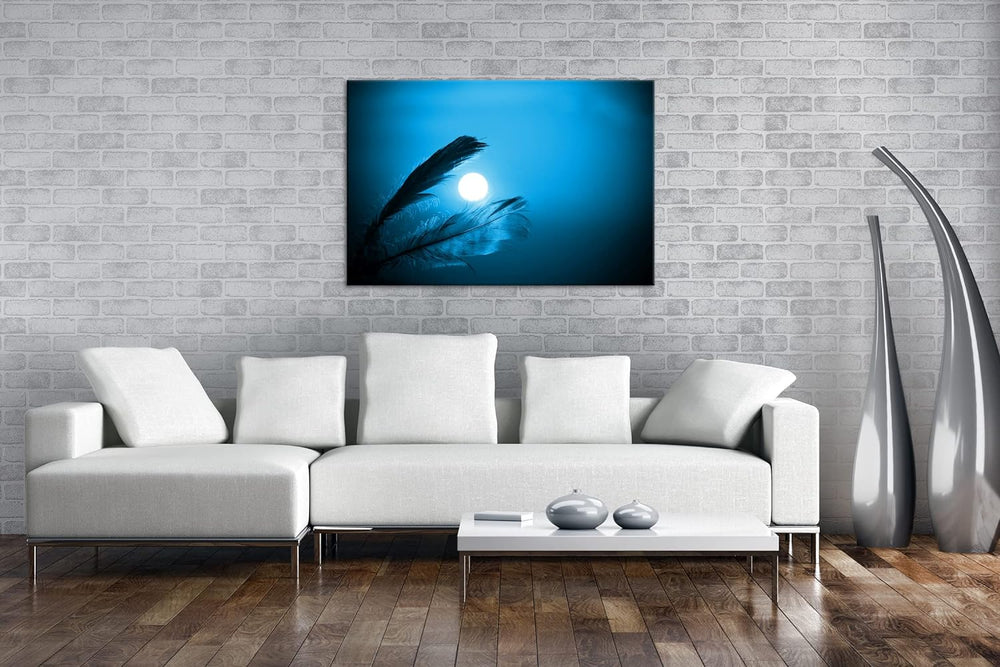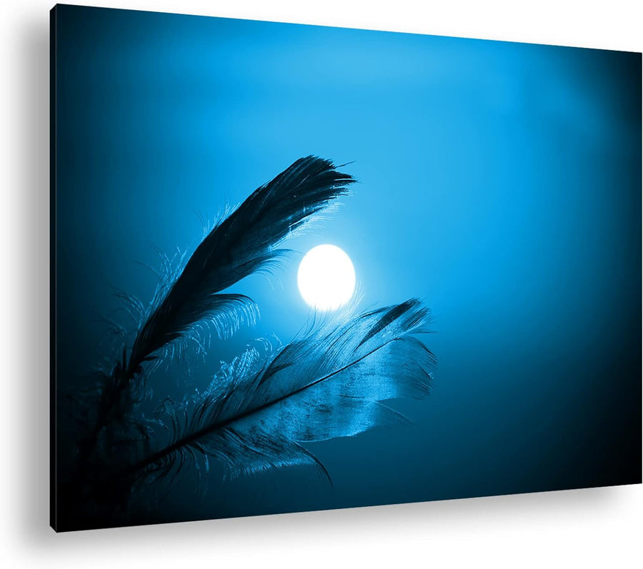 deyoli Federn im Sonnenuntergang Format: 80x60 Effekt: Monocrome Blau als Leinwandbild, Motiv fertig