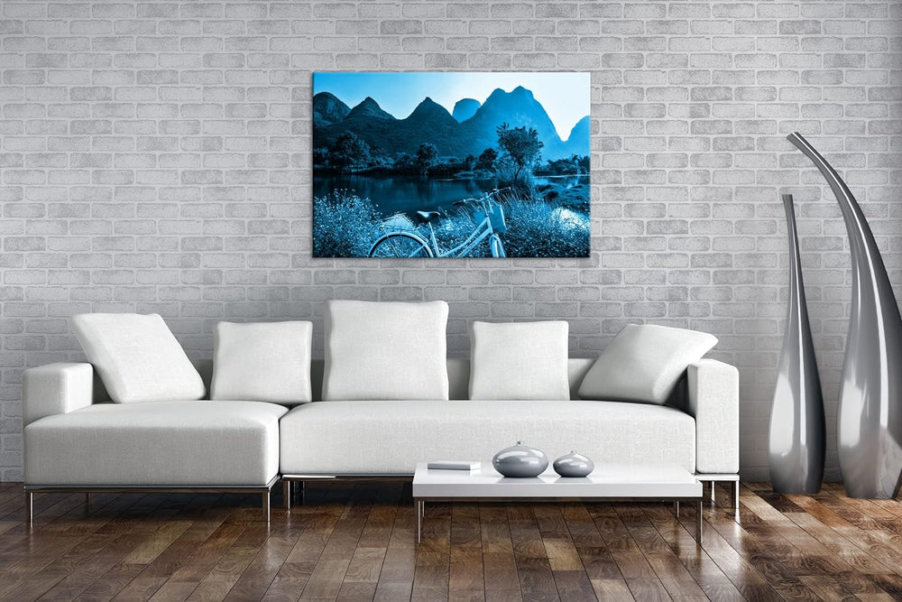 deyoli Fahrradtour in China Format: 80x60 Effekt: Monocrome Blau als Leinwand, Motiv fertig gerahmt