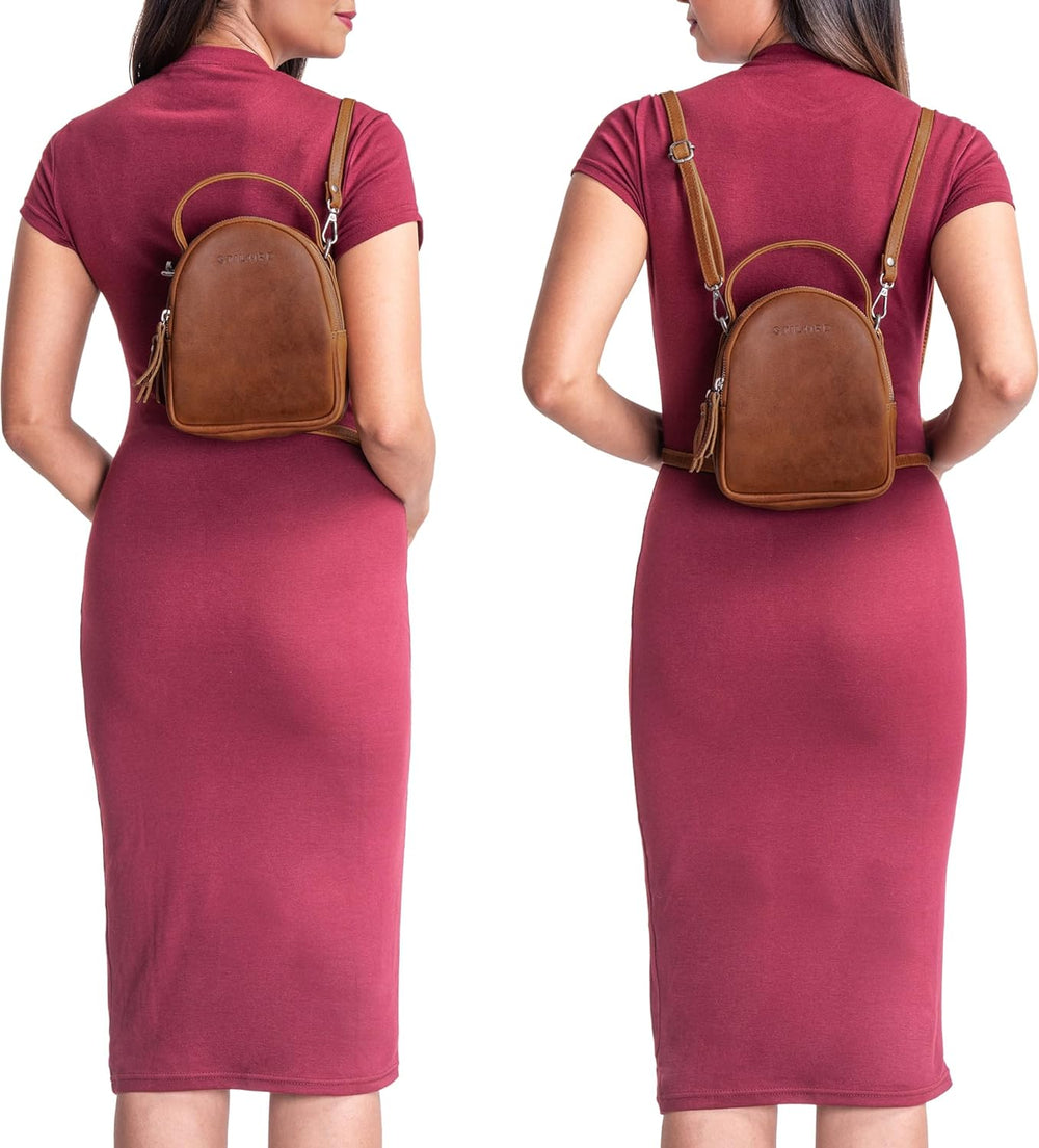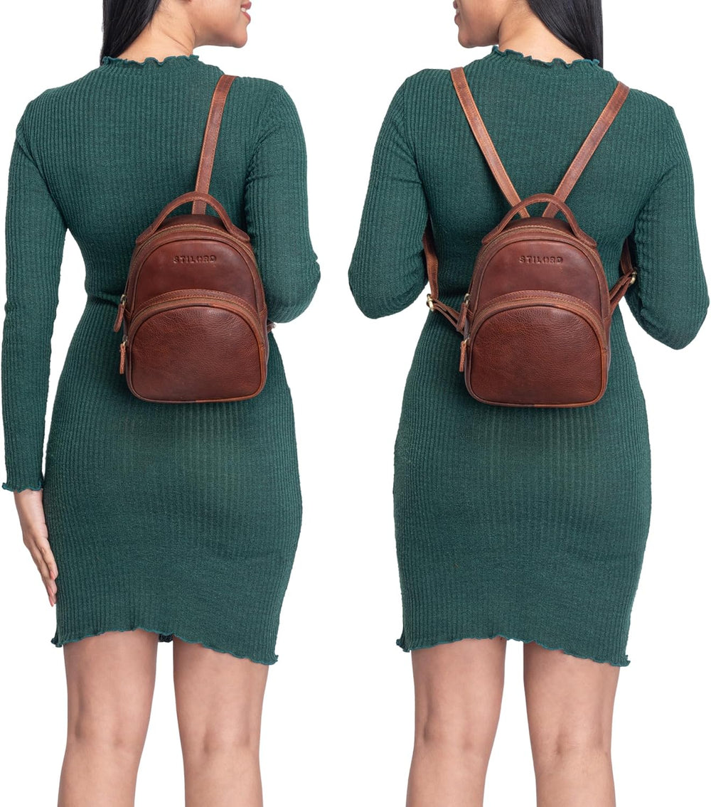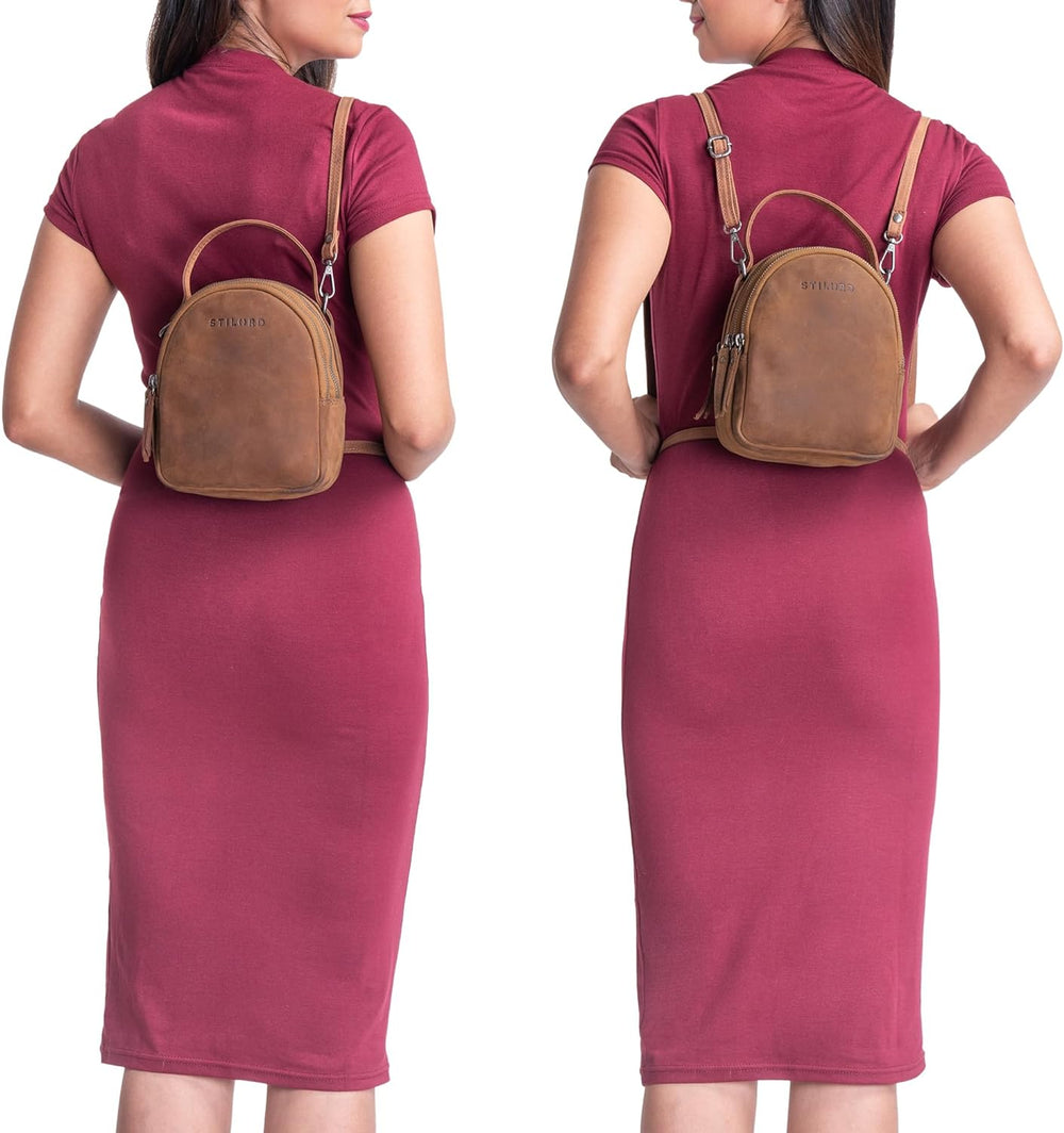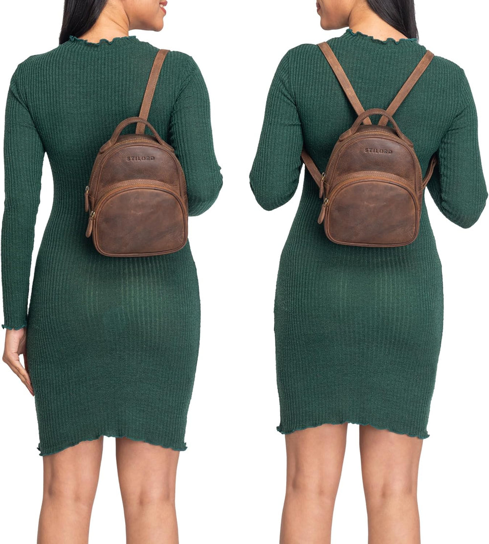 STILORD 'Stacy' Rucksack Handtasche Damen Klein Mini Daypack Lederrucksack Vintage Backpack aus Lede