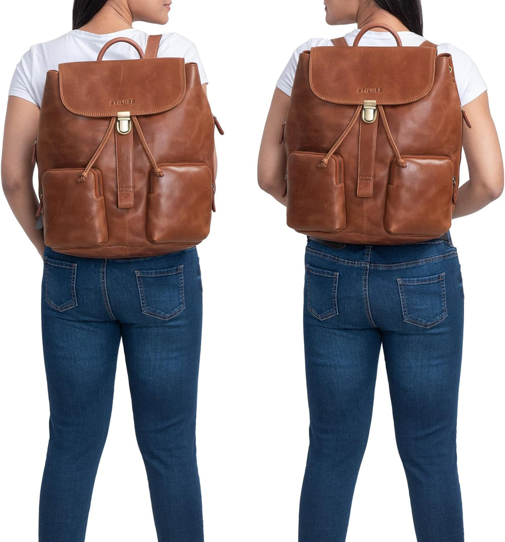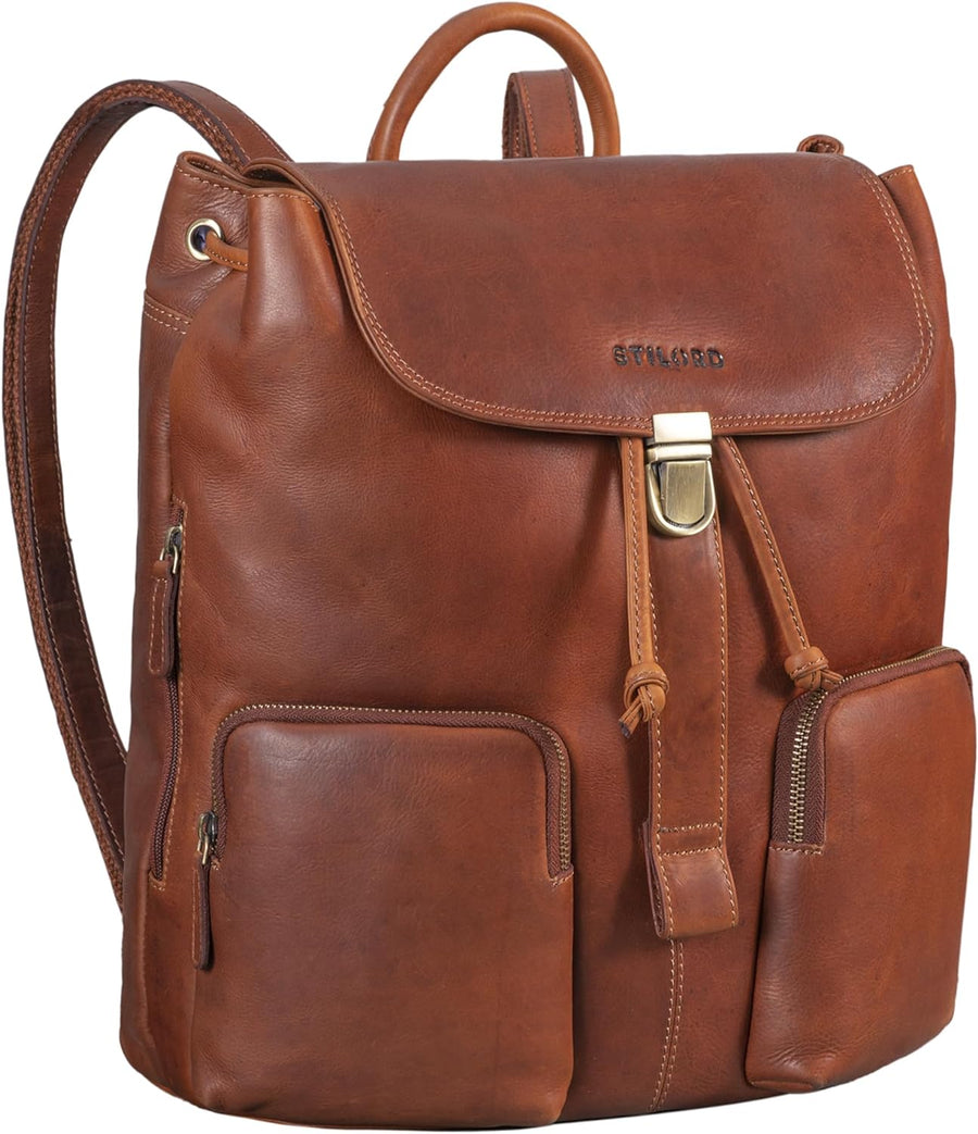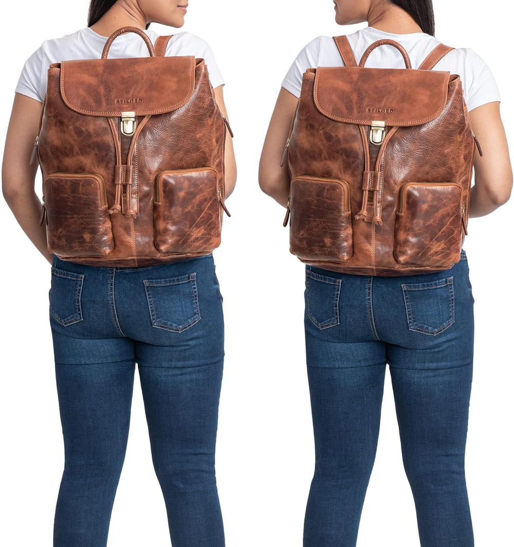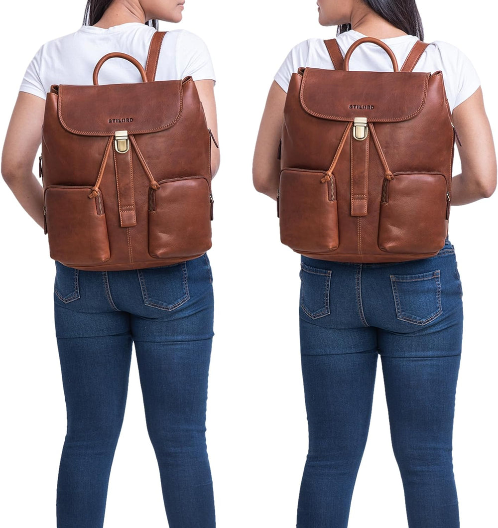 STILORD 'Sidney'' Leder Businessrucksack Damen Gross Vintage Daypack mit Laptopfach 13,3 Zoll DIN A4