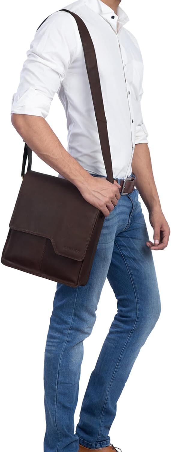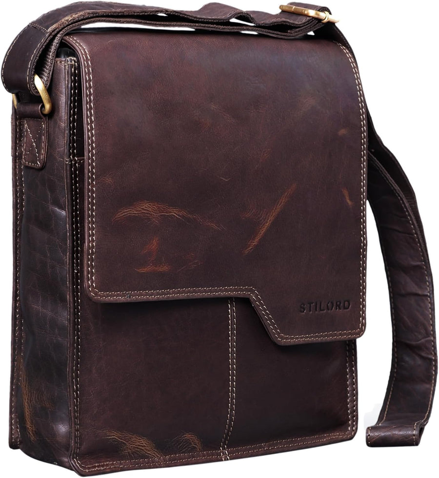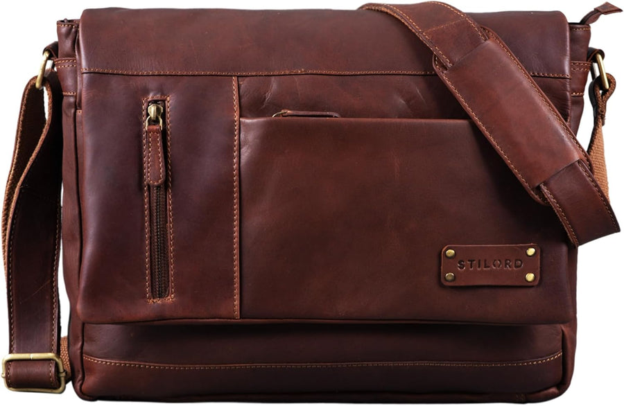 STILORD 'Sheffield' Umhängetasche Herren Leder für 13,3 Zoll MacBooks mittelgrosse Schultertasche He