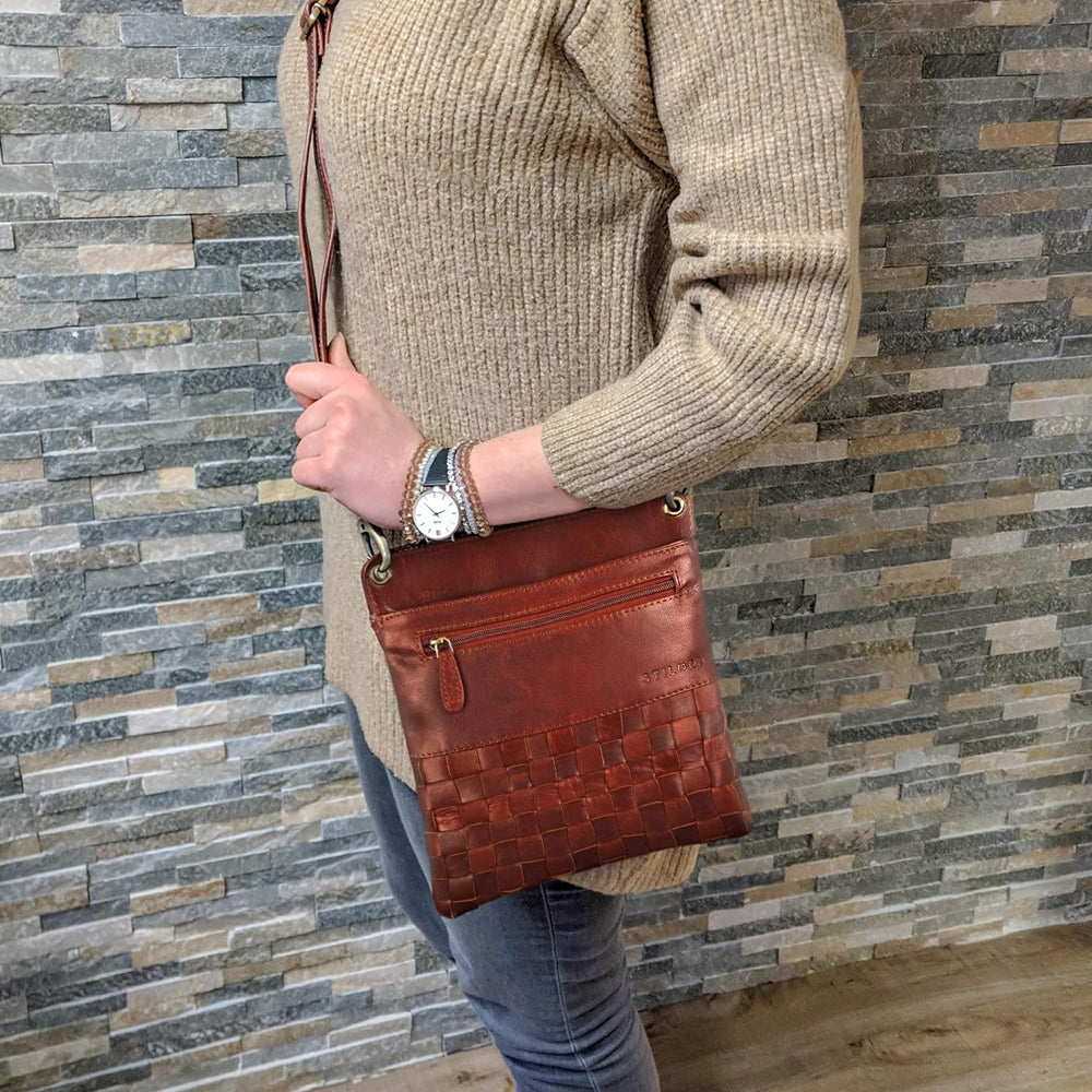 STILORD 'Sophie' Schultertasche Damen klein Leder Handtasche moderne Umhängetasche geflochten Freize
