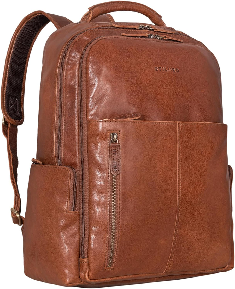 STILORD 'Sherlock' Laptoprucksack 17 Zoll Leder Herren Vintage Studenten Rucksack Damen Leder Cityru
