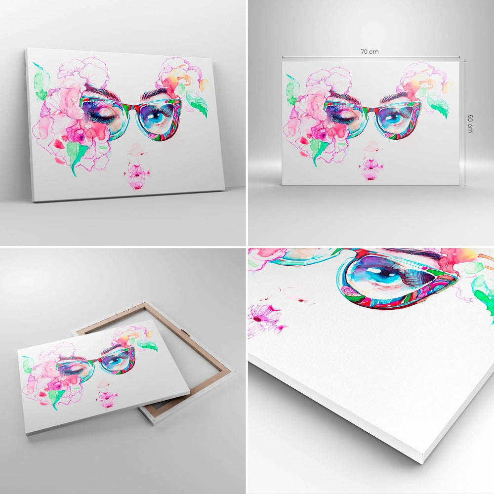 Bilder auf Leinwand Gläser Augapfel weiblich Farbe Leinwandbild 70x50cm Wandbilder Dekoration Wohnzi