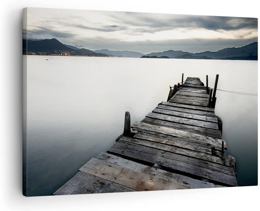Bilder auf Leinwand Gehweg Baum Holz Steg Leinwandbild mit Rahmen 45x80cm Wandbilder Dekoration Wohn