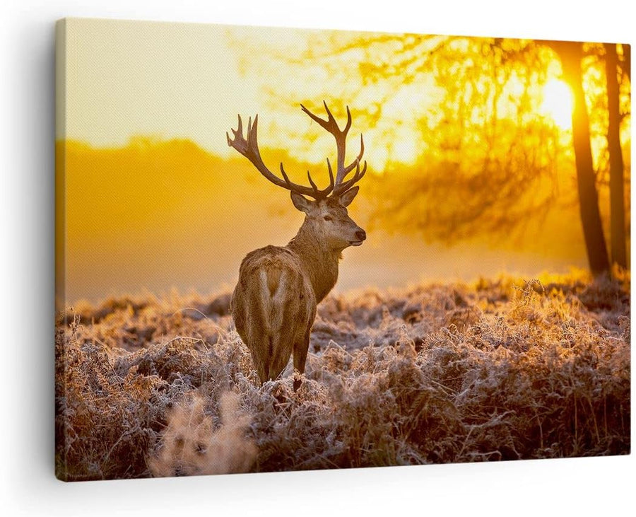 Bilder auf Leinwand Hirsch Natur Landschaft Dekoration Leinwandbild 70x50cm Wandbilder Dekoration Wo
