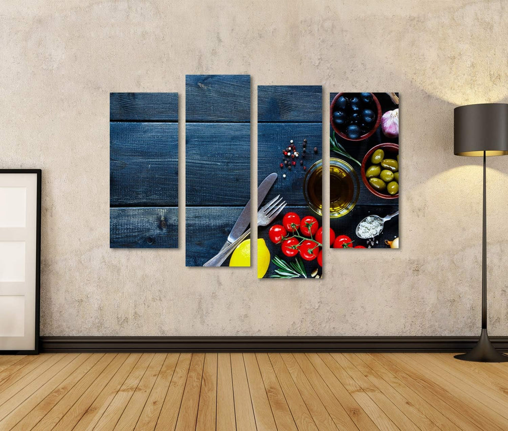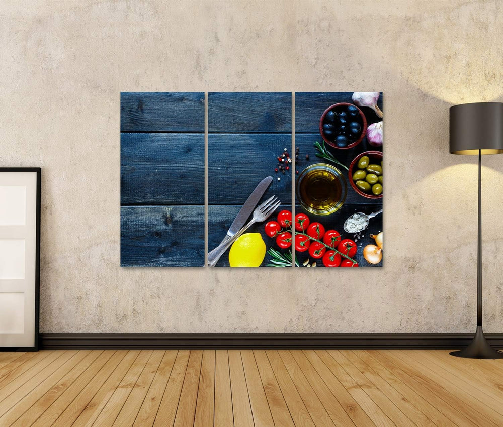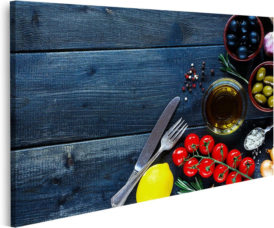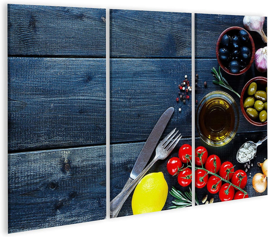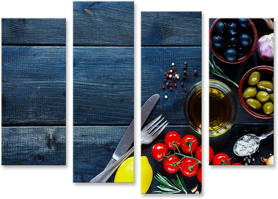 islandburner Bild auf Leinwand Italienisches Essen Oliven Tomaten Öl In Schalen Bilder Wandbilder Po