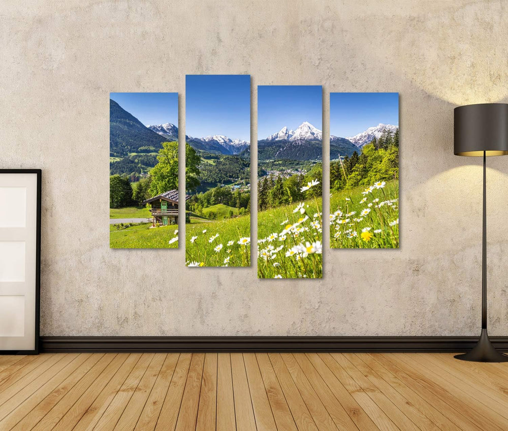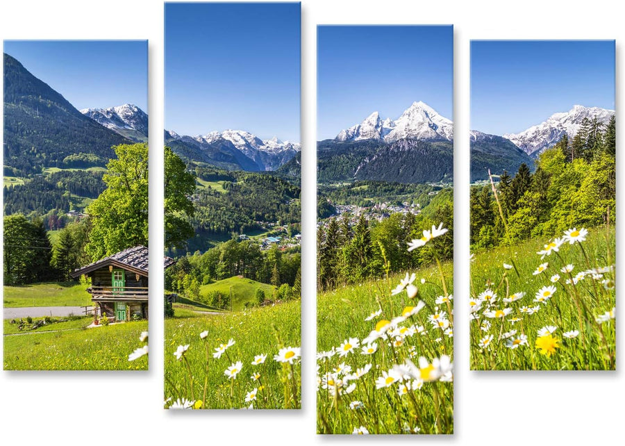 islandburner Bild auf Leinwand Idyllische Sommerlandschaft Alpen Berghütte Schönes Bayerisches Dorf