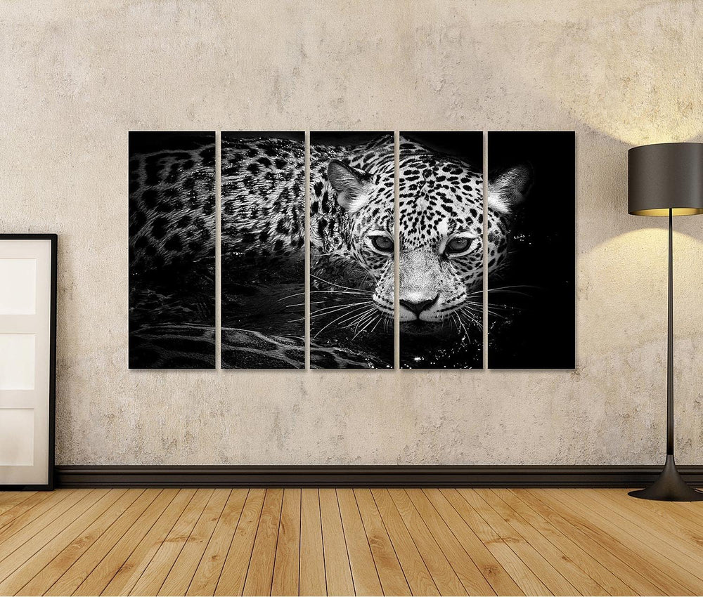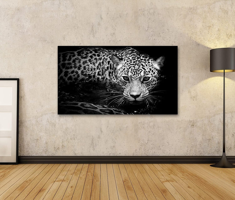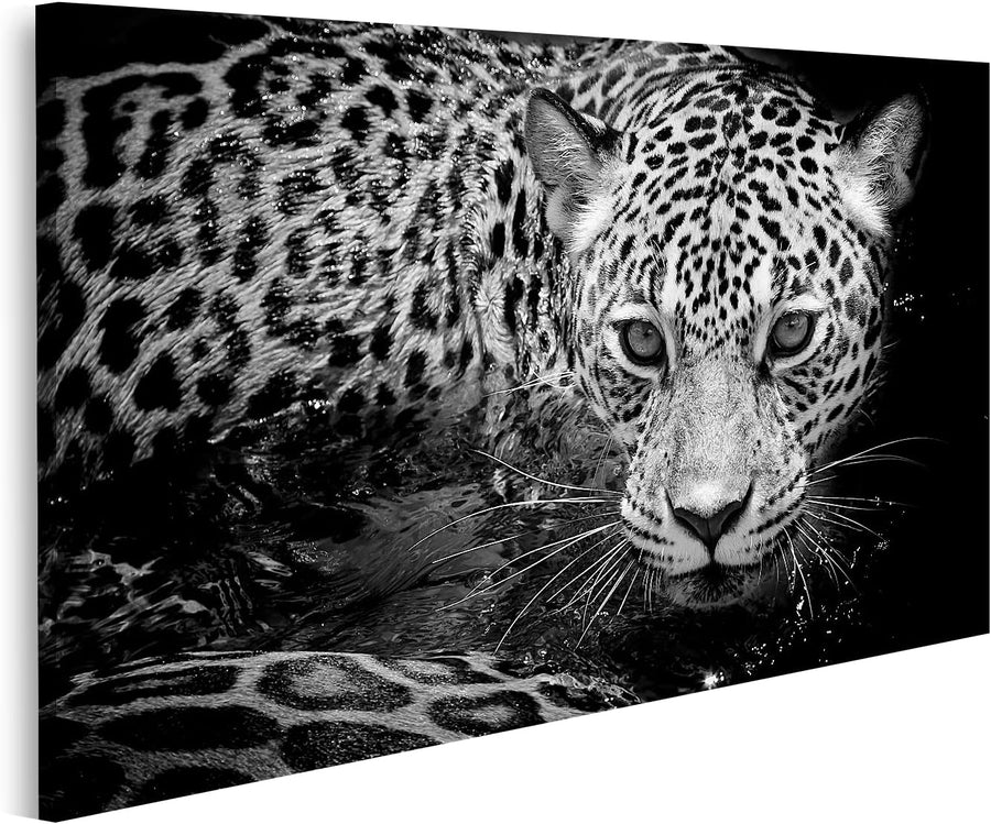 islandburner Bild auf Leinwand Jaguar Portrait Schwarz-Weiss Bilder Wandbilder Poster Leinwand 160x8