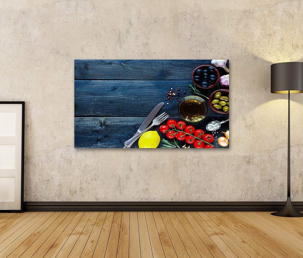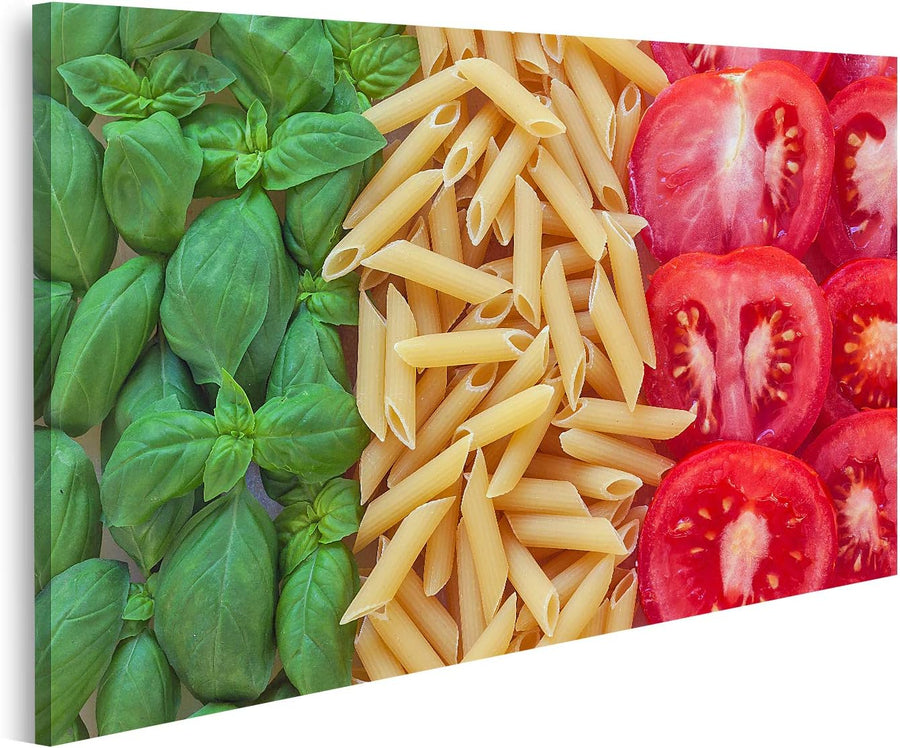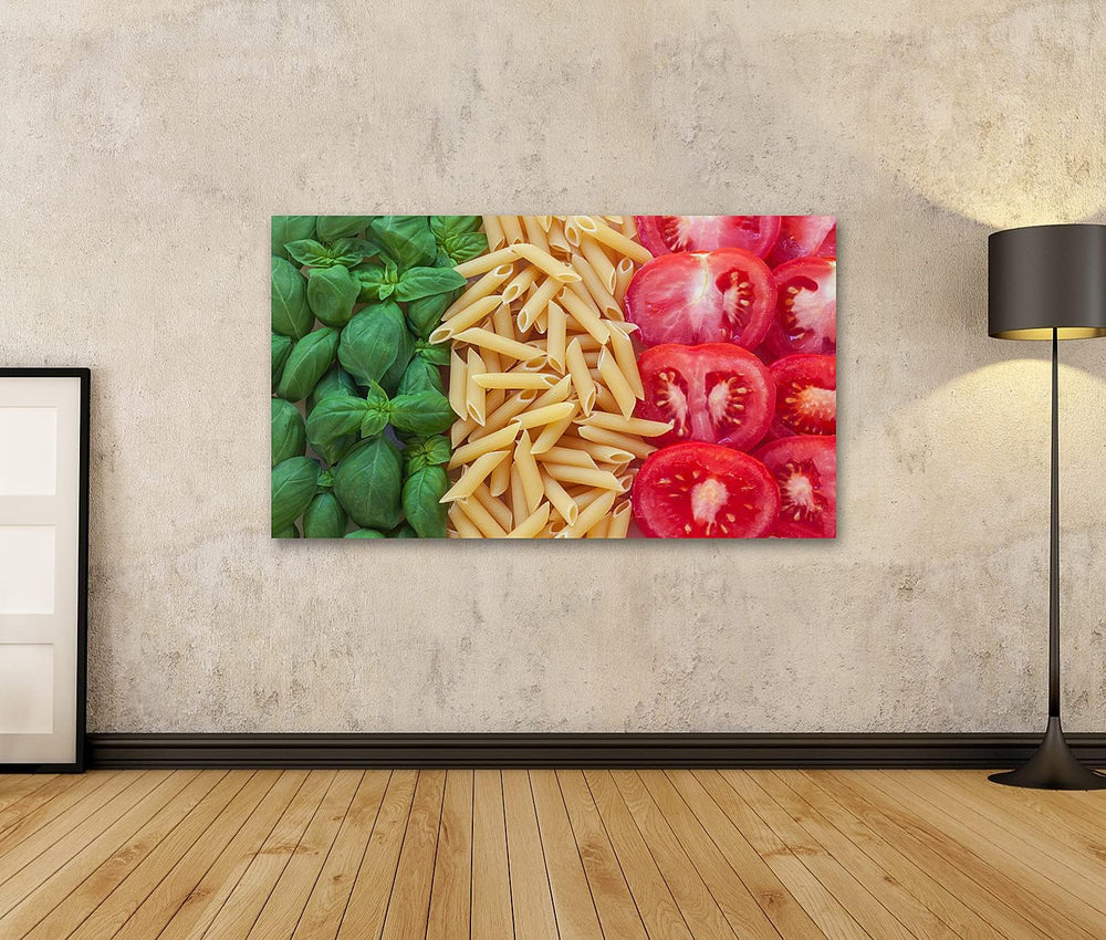 islandburner Bild auf Leinwand Italienisches Essen Mit Hintergrund Teigwaren Tomaten Basilikum Küche