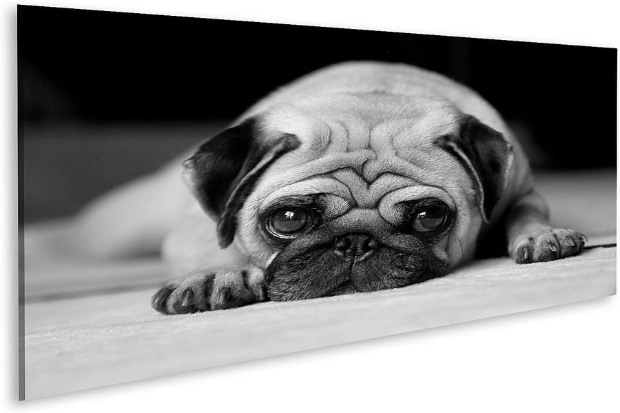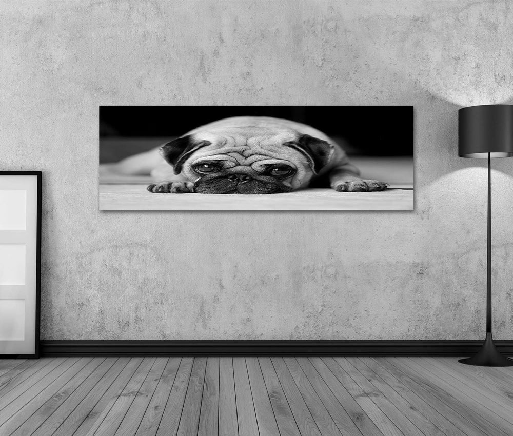 islandburner Bild auf Leinwand Hund Mops Schwarz Weiss Bilder Wandbilder Poster Leinwand 120x40cm -