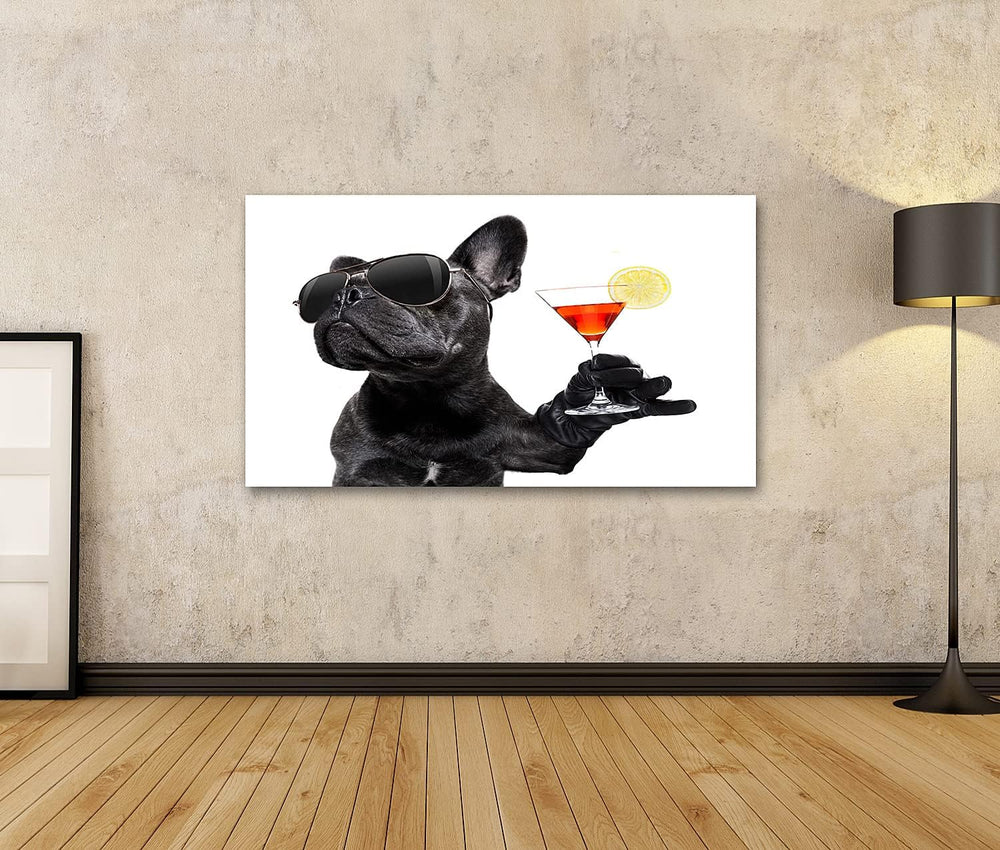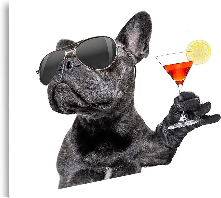 islandburner Bild auf Leinwand Hund Trinkt Cocktail Coole Französische Bulldogge Bilder Wandbilder P