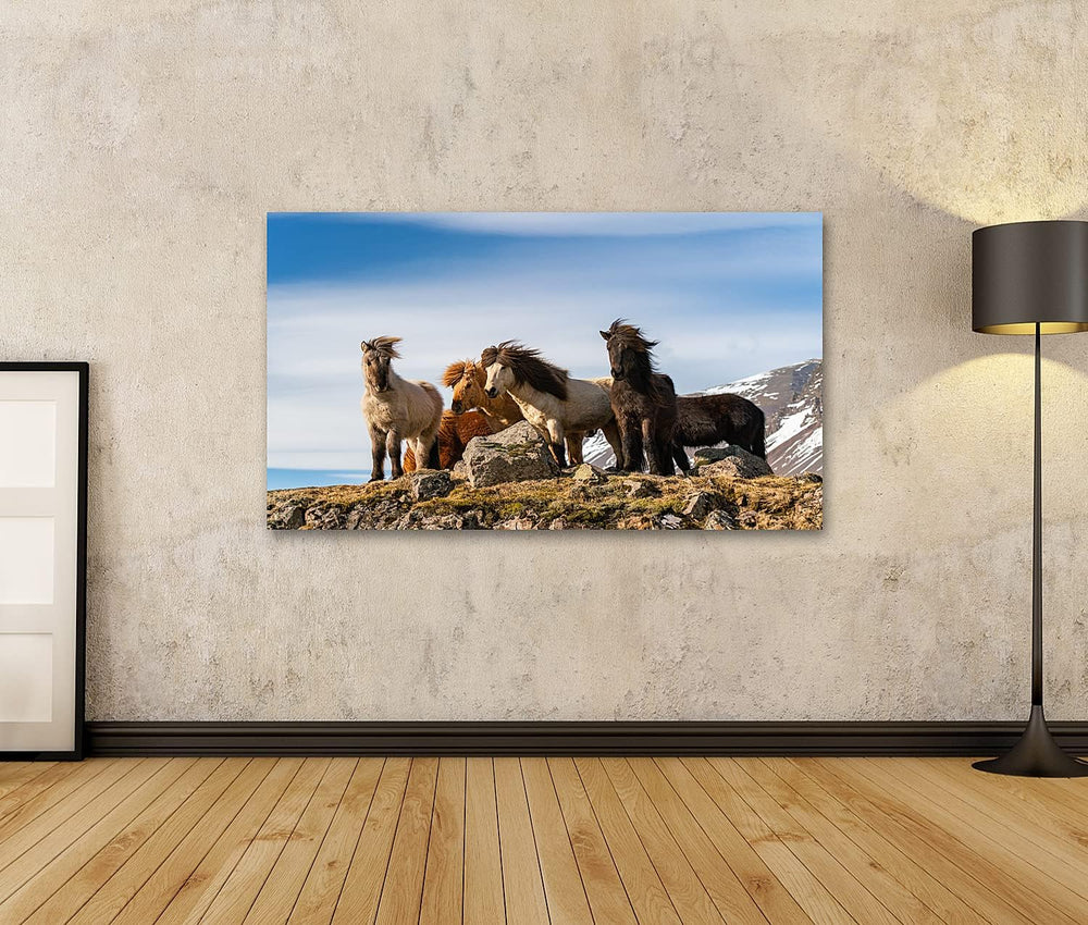 islandburner Bild auf Leinwand Isländische Pferde Pferderasse Geschaffen Island Schöne Winterausgabe
