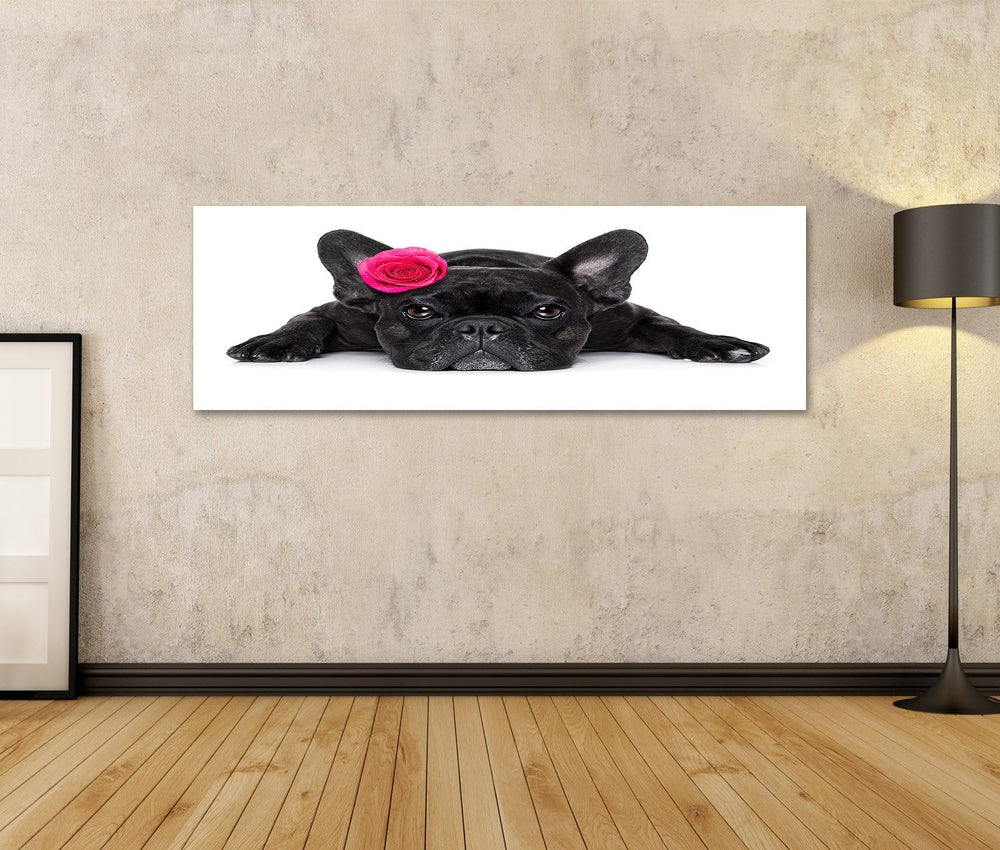 islandburner Bild auf Leinwand Hund der französischen Bulldogge, der Sie, beim Lügen aus den Grund o