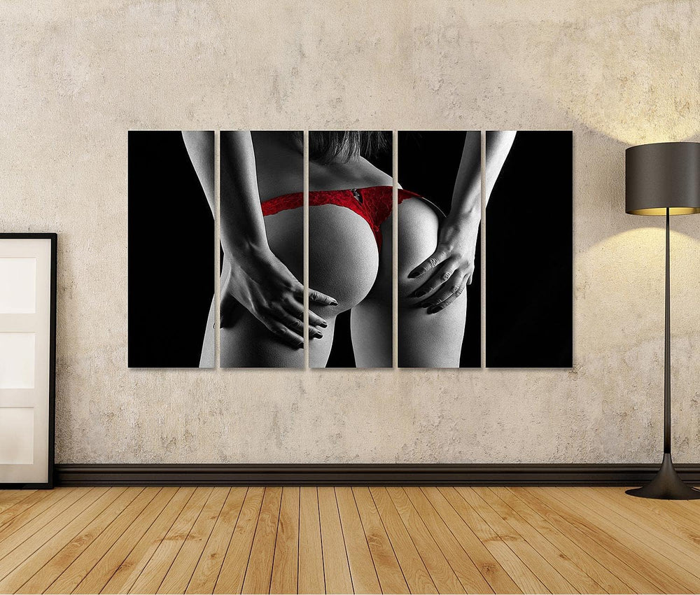 islandburner Bild auf Leinwand Hüfte Einer Reizvollen Frau Mit Rotem String Auf Schwarzem Hintergrun