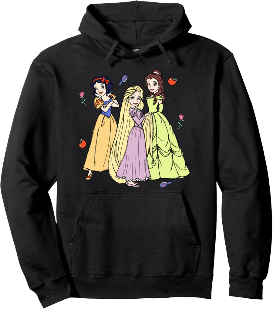 Disney Princess Rapunzel Snow White Belle Cartoon Sketch Pullover Hoodie